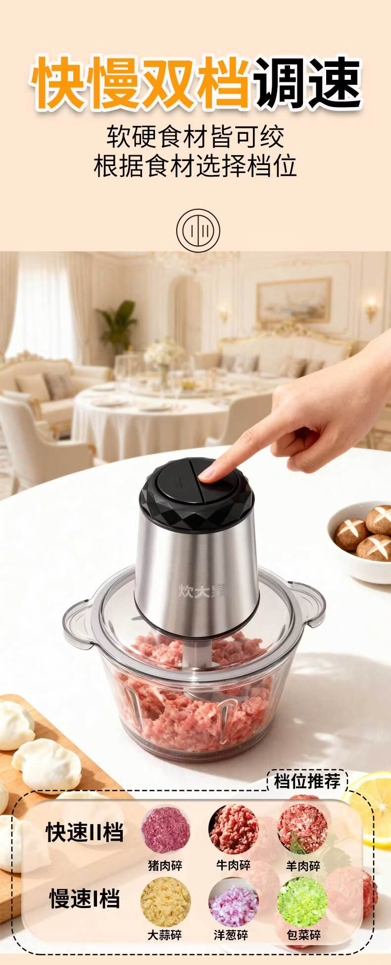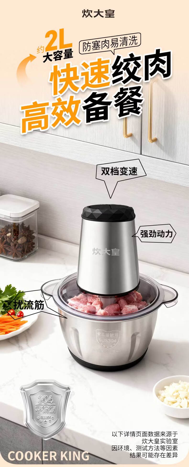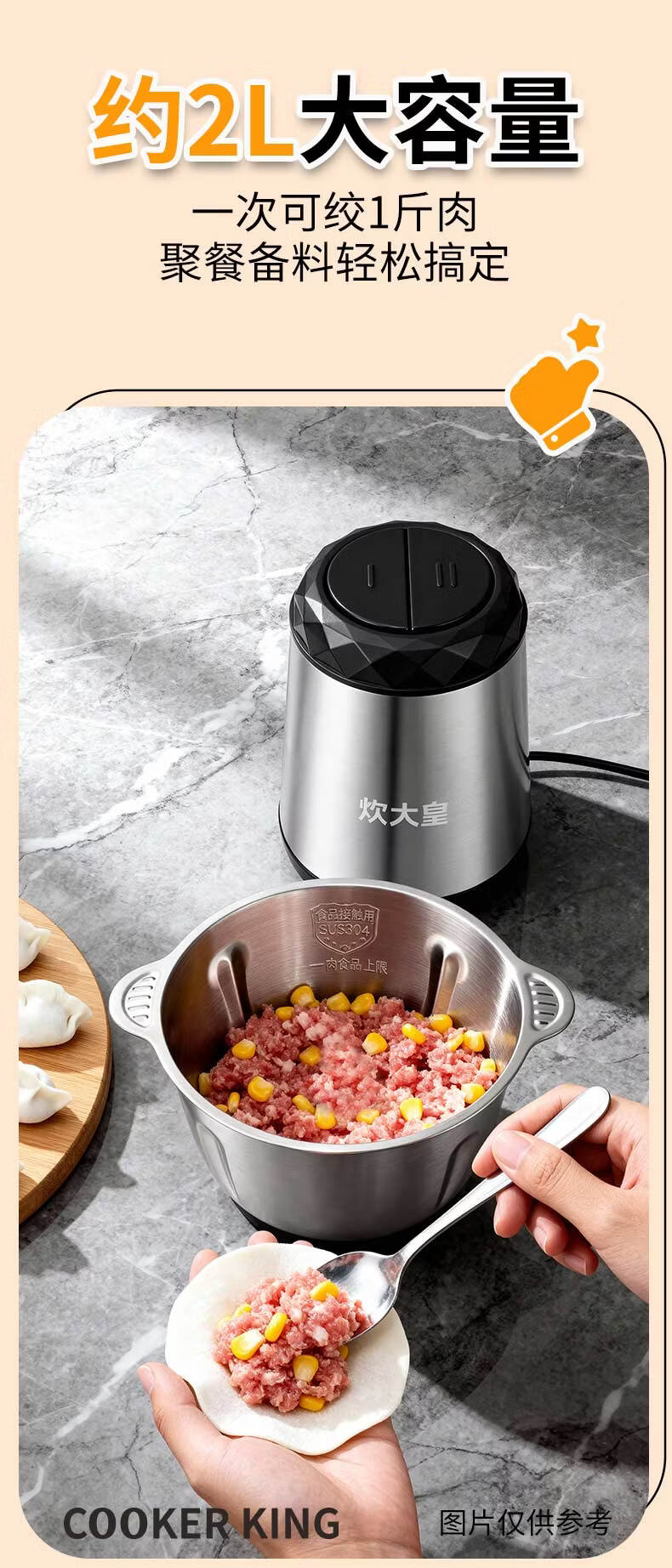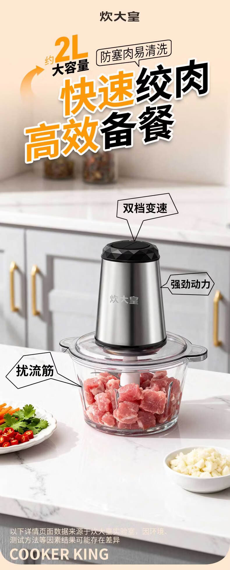 炊大皇(COOKER KING)绞肉机电动双档易清洗2L大容量不锈钢碗/玻璃碗 玻璃碗 2L
