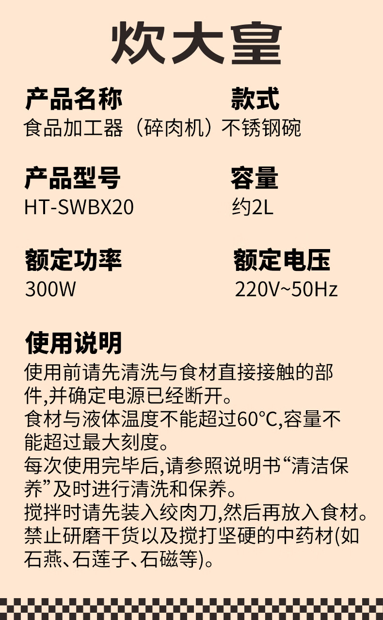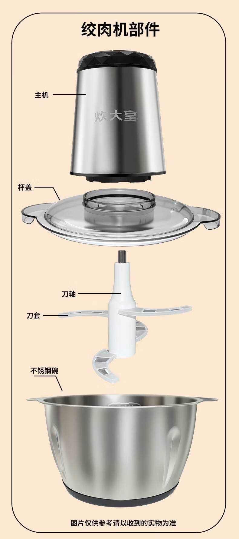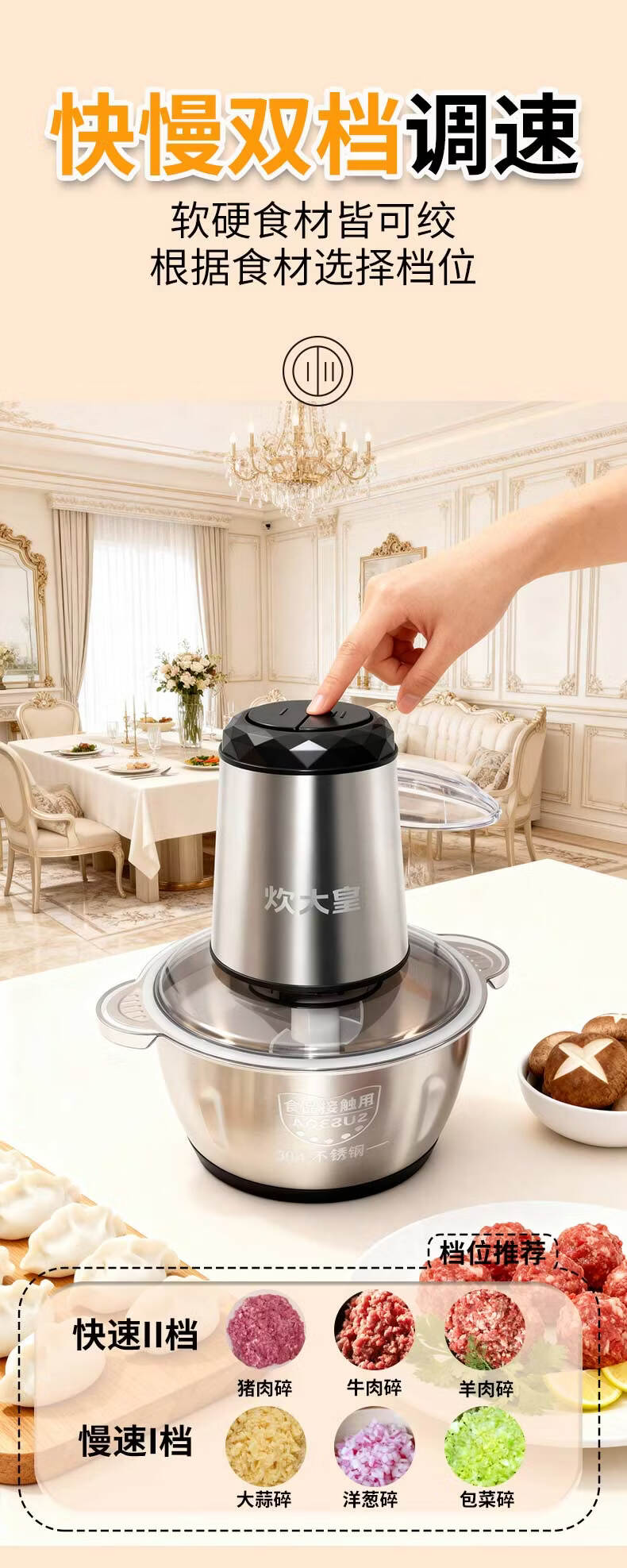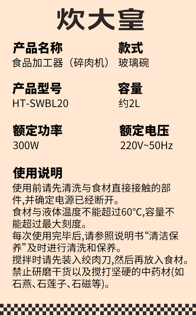 炊大皇(COOKER KING)绞肉机电动双档易清洗2L大容量不锈钢碗/玻璃碗 玻璃碗 2L