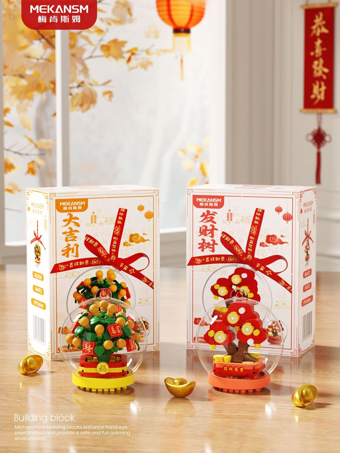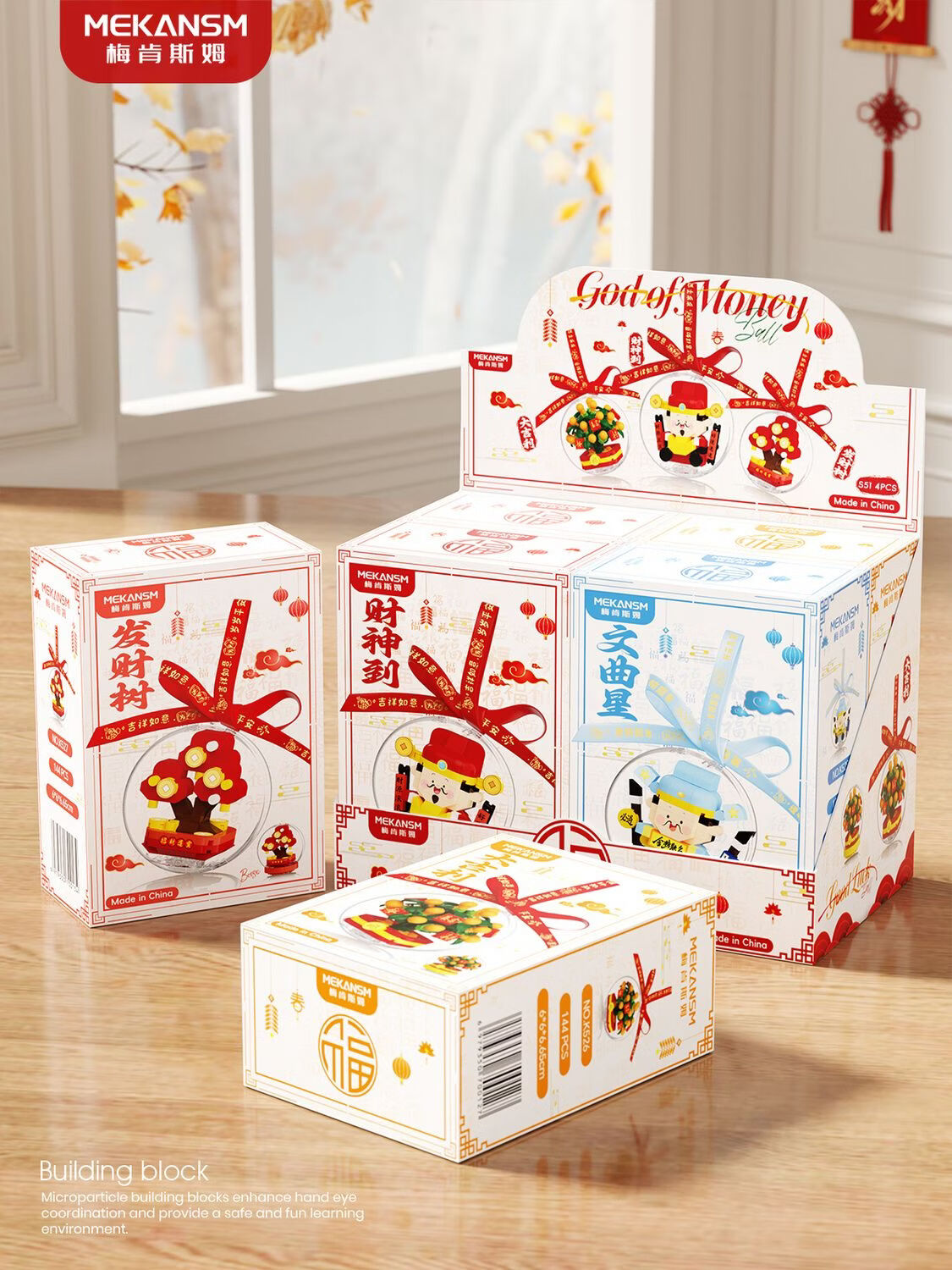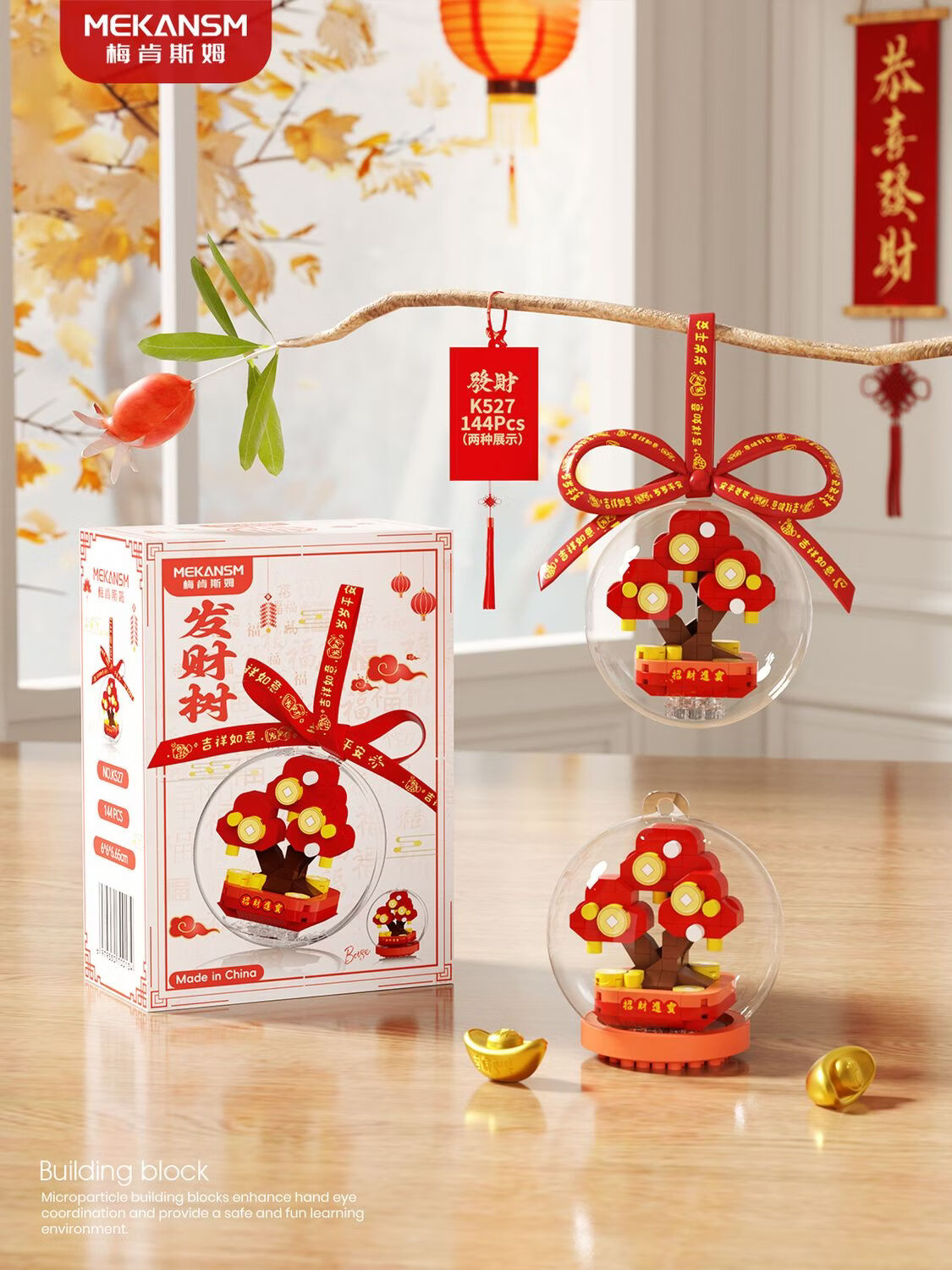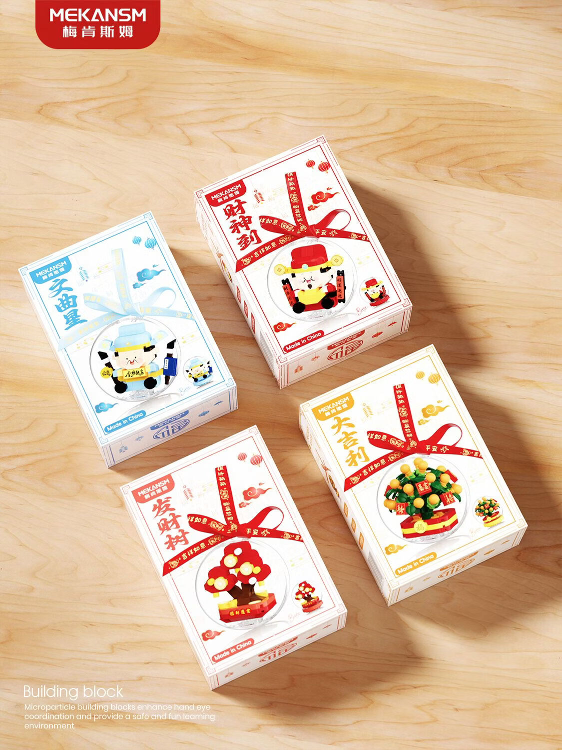 奇优宝2026马年祥瑞福运积木财神爷发财橘子树水晶球摆挂件玩具新年礼物 文曲星带透明球133颗粒【两种拼发】