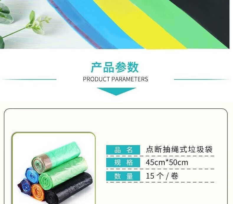 JEPOO加厚大号手提抽绳垃圾袋彩色断点式45cm*50cm大容量垃圾桶袋 10卷共150只装