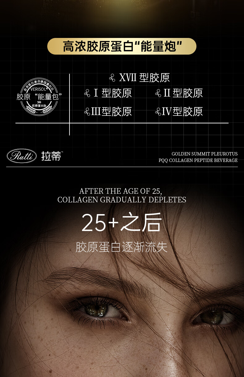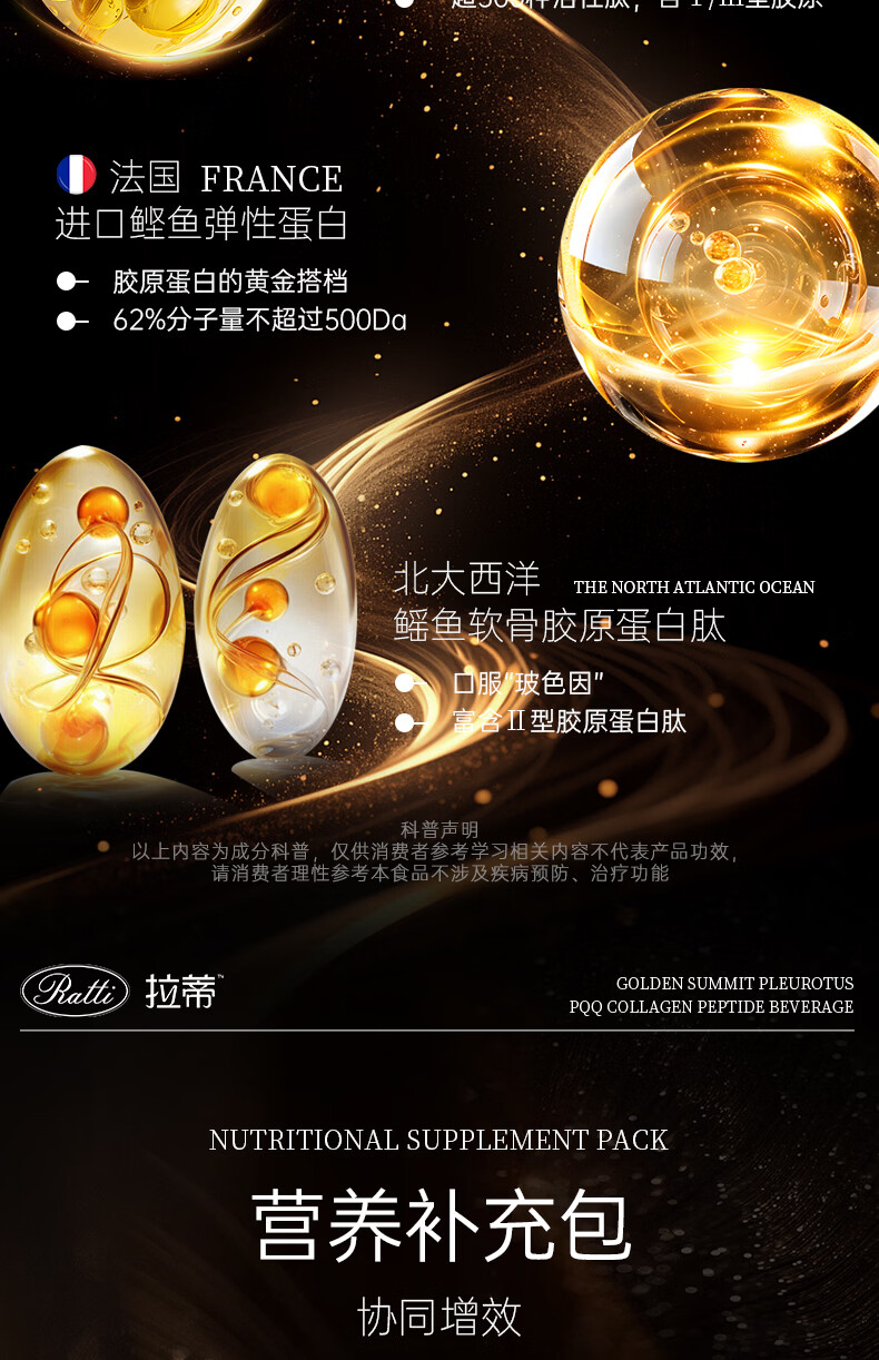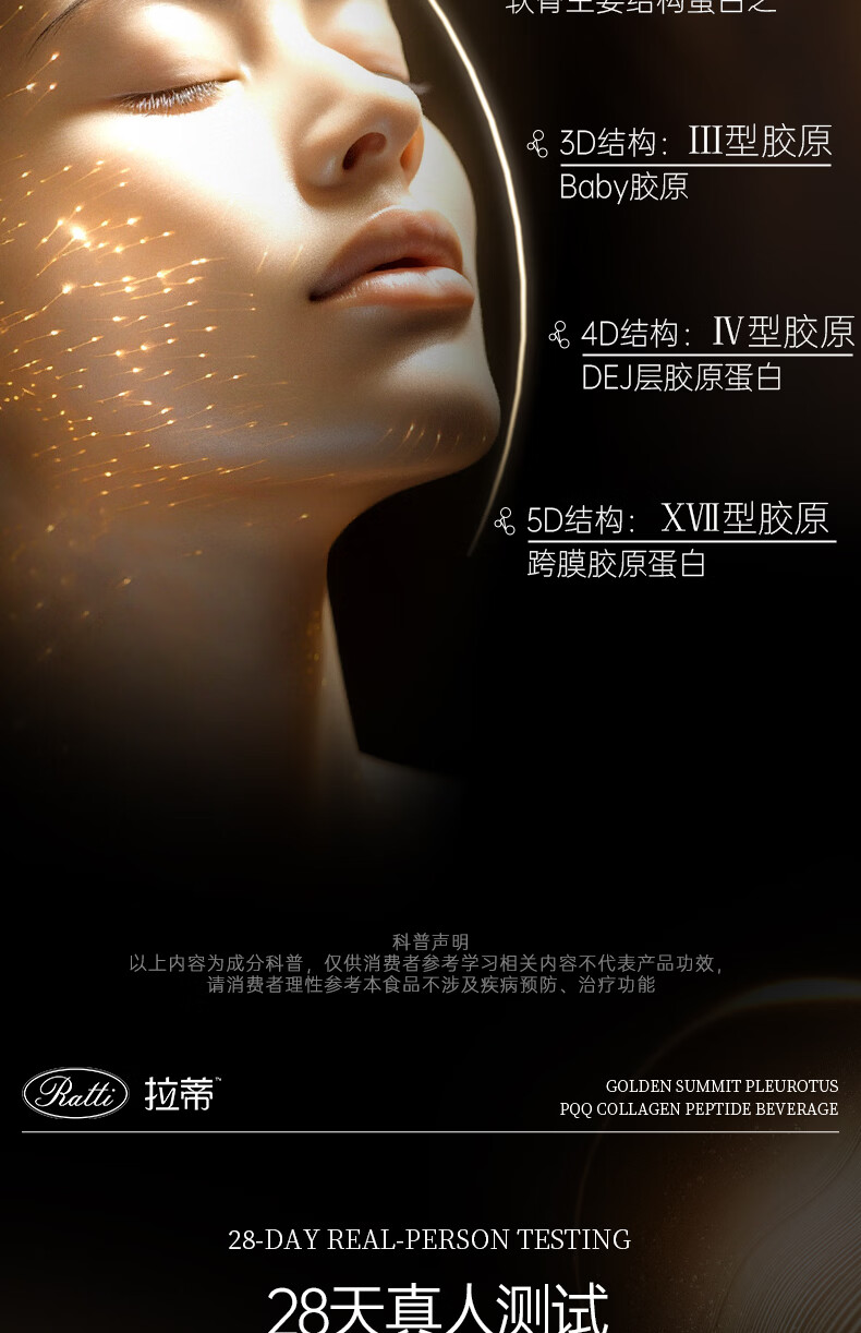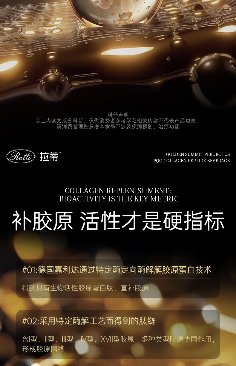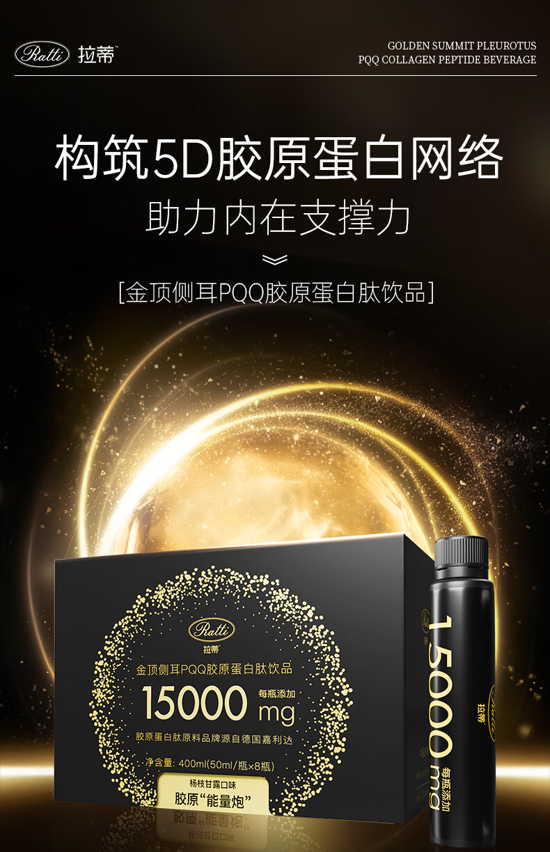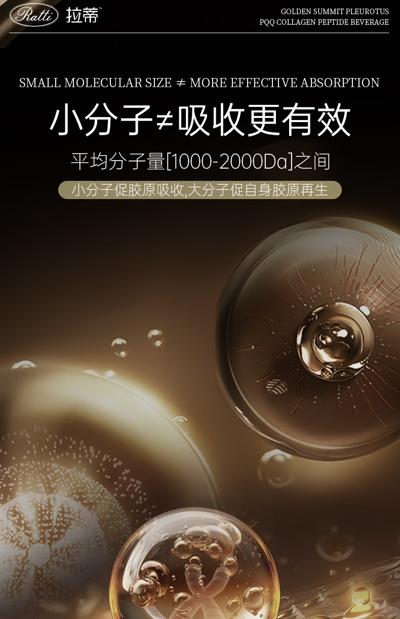 RATTI拉蒂胶原蛋白肽饮口服饮品小分子胶原金顶侧耳pqq正品官方旗舰店 单月装+6支【到手30支】 50ml*30瓶