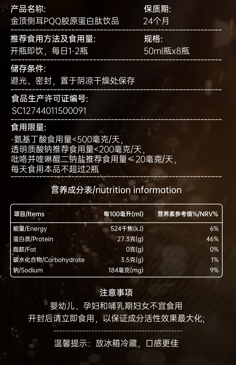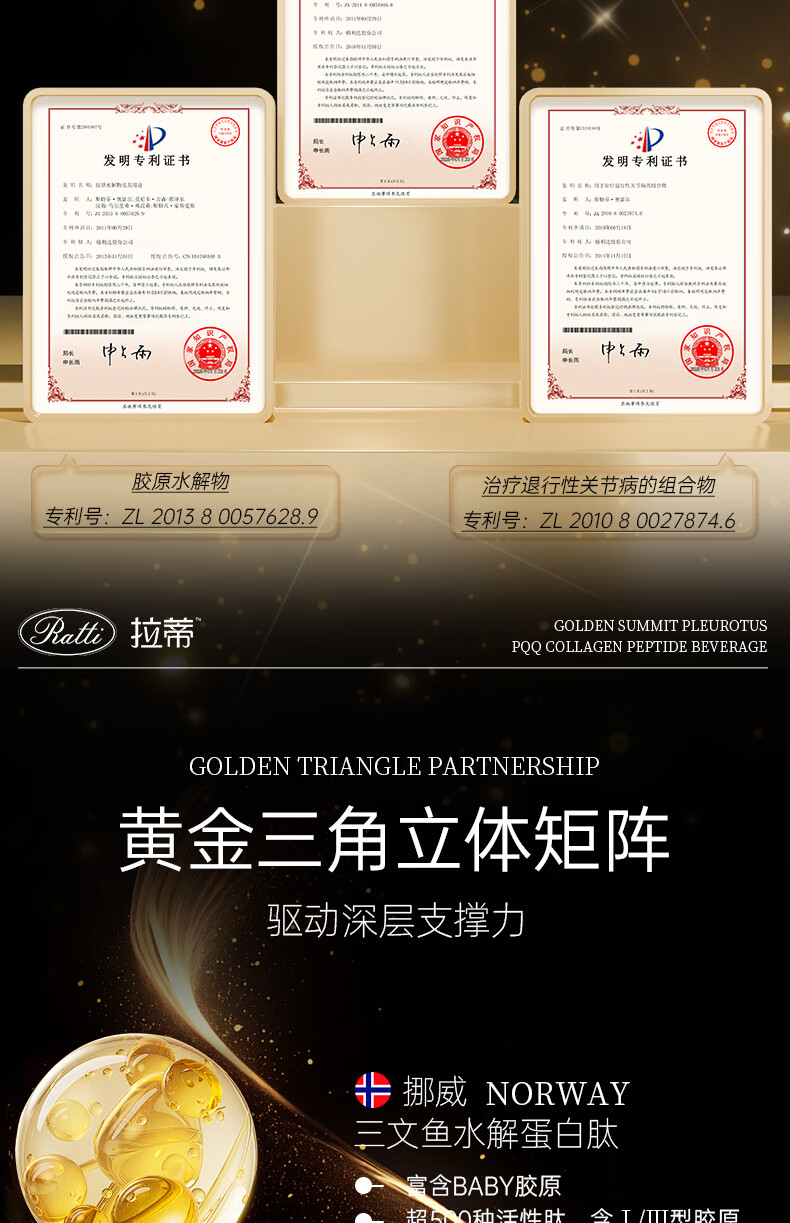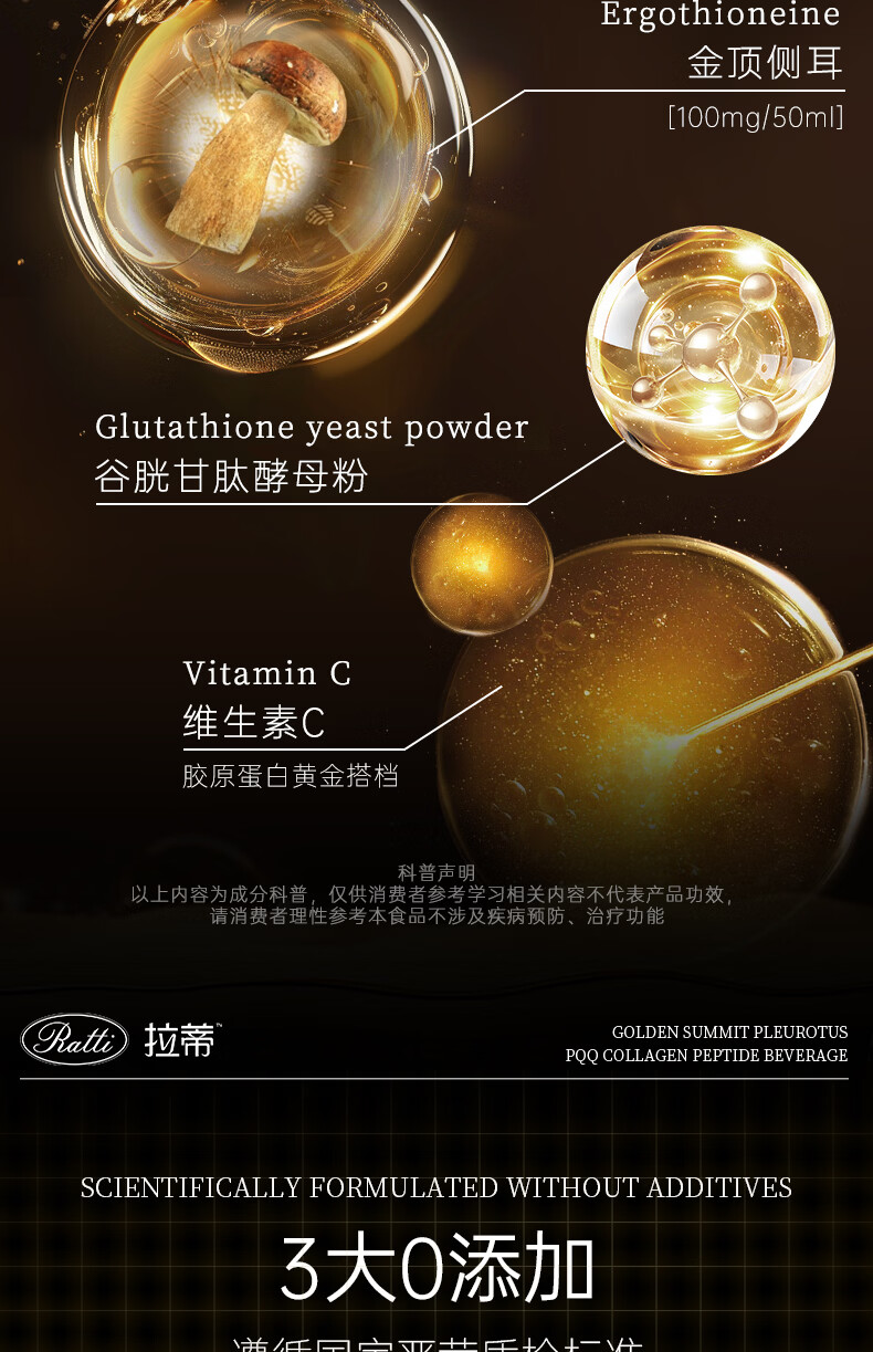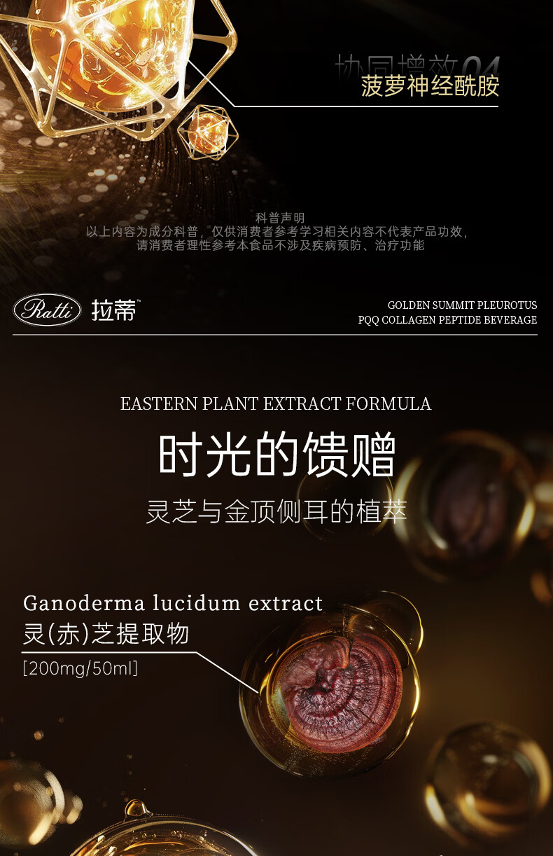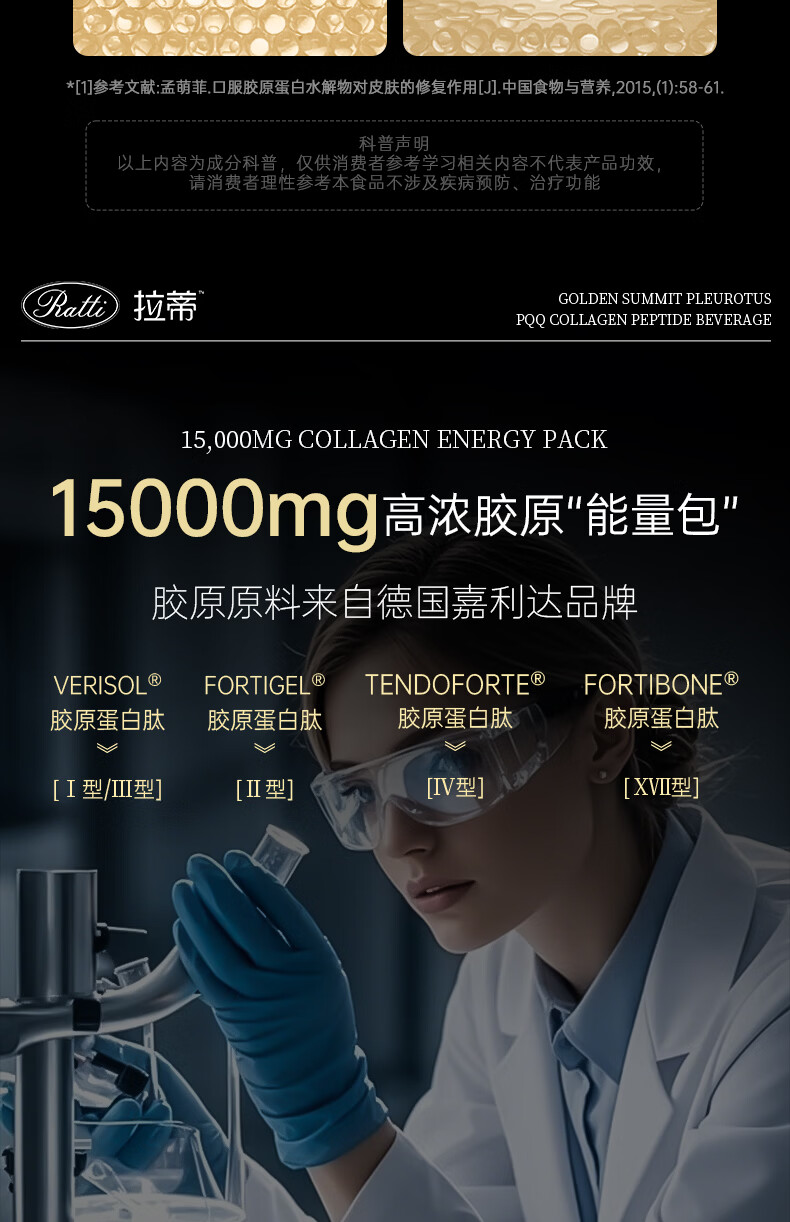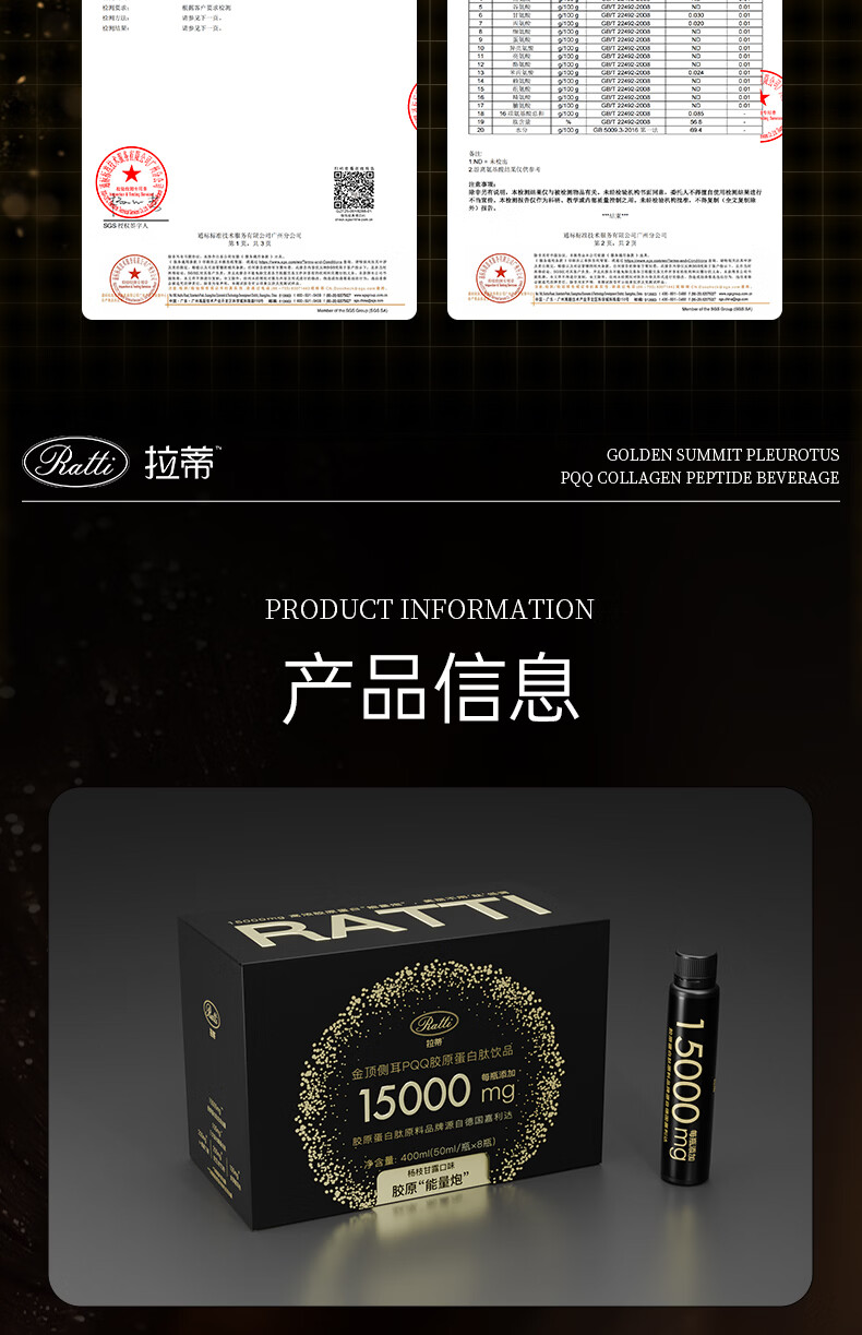 RATTI拉蒂胶原蛋白肽饮口服饮品小分子胶原金顶侧耳pqq正品官方旗舰店 单月装+6支【到手30支】 50ml*30瓶