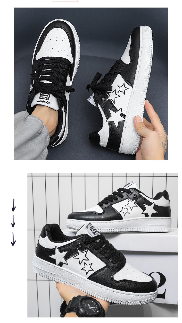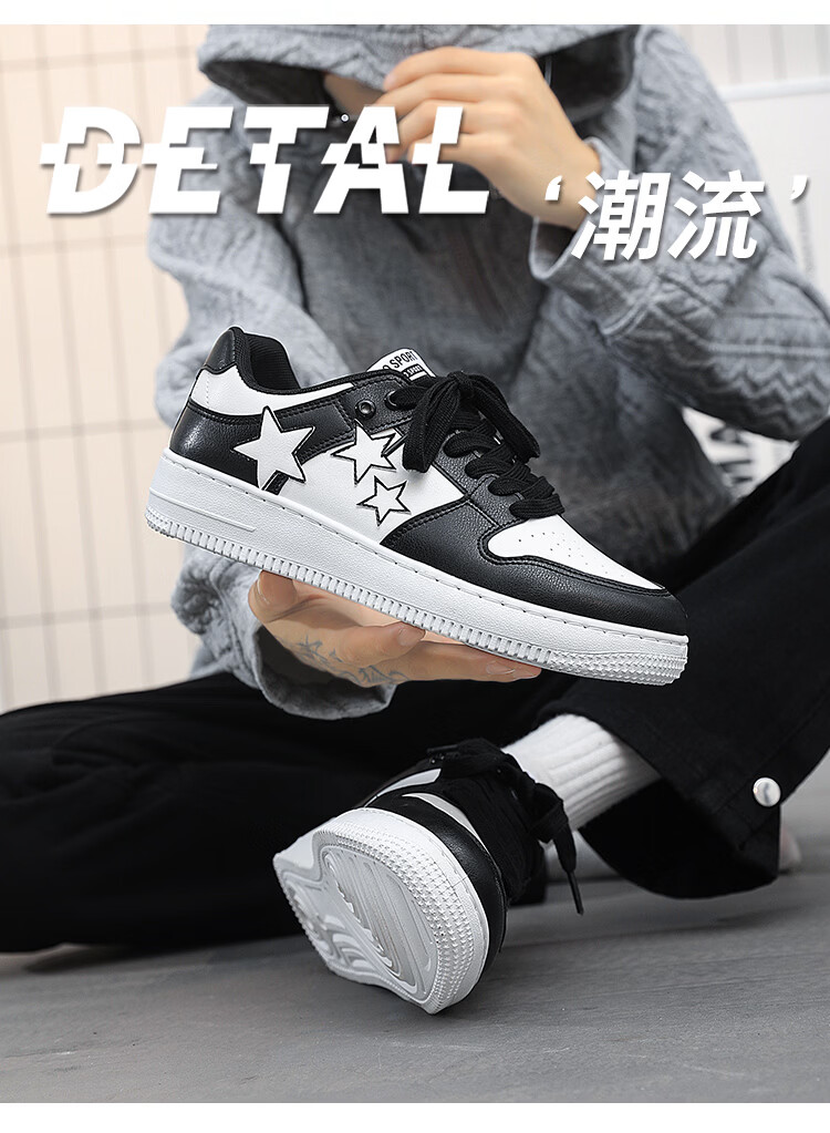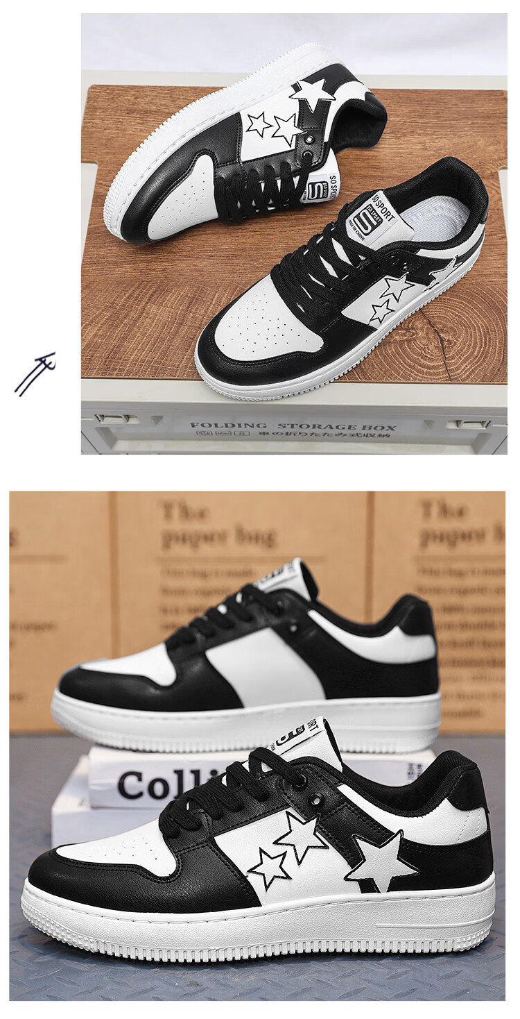 西域骆驼(VANCAMEL)男鞋板鞋男低帮休闲鞋运动鞋轻便百搭鞋子皮面黑白熊猫dunk小白鞋 【官方正品 质量保证】黑色配色 44