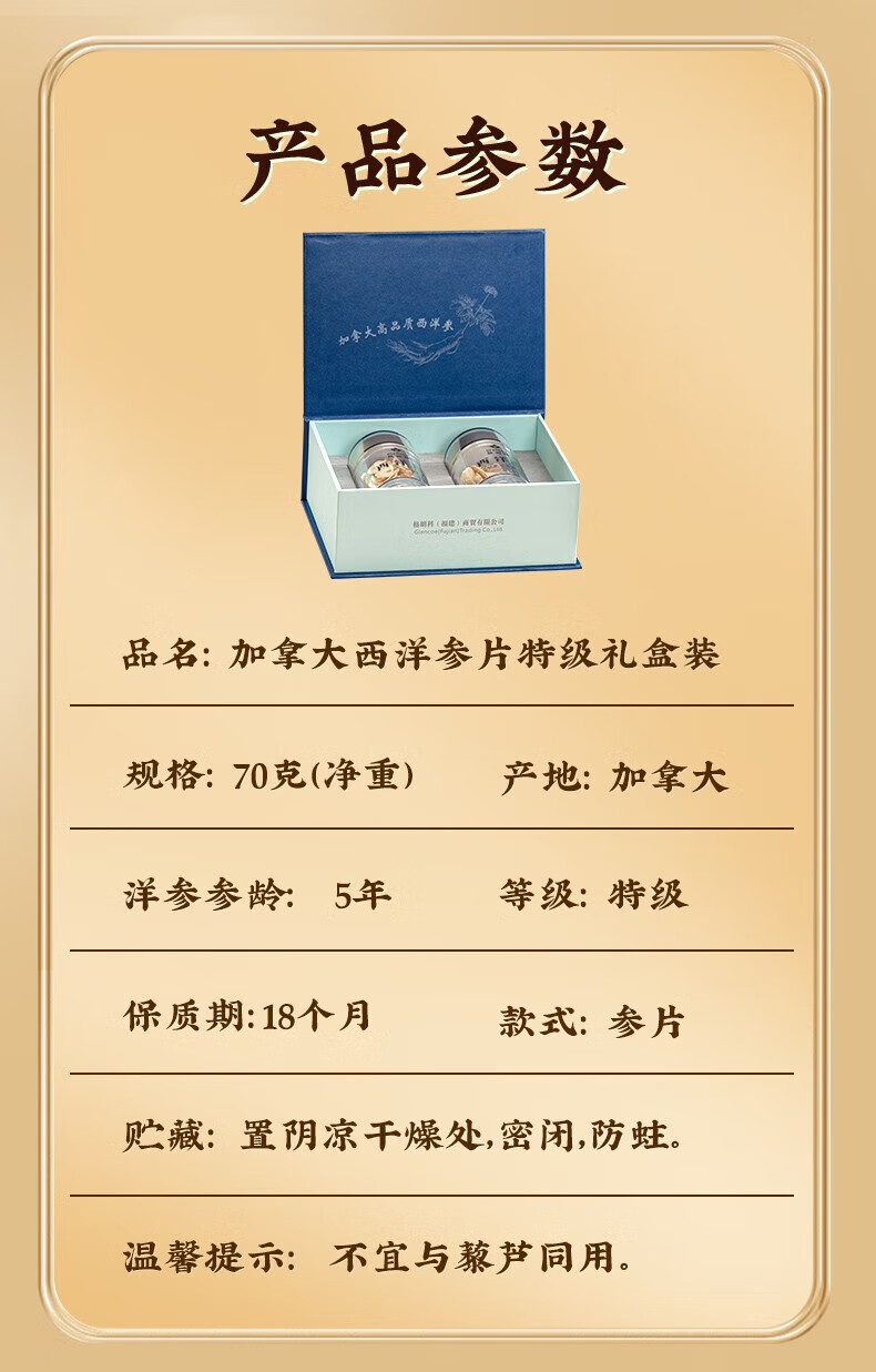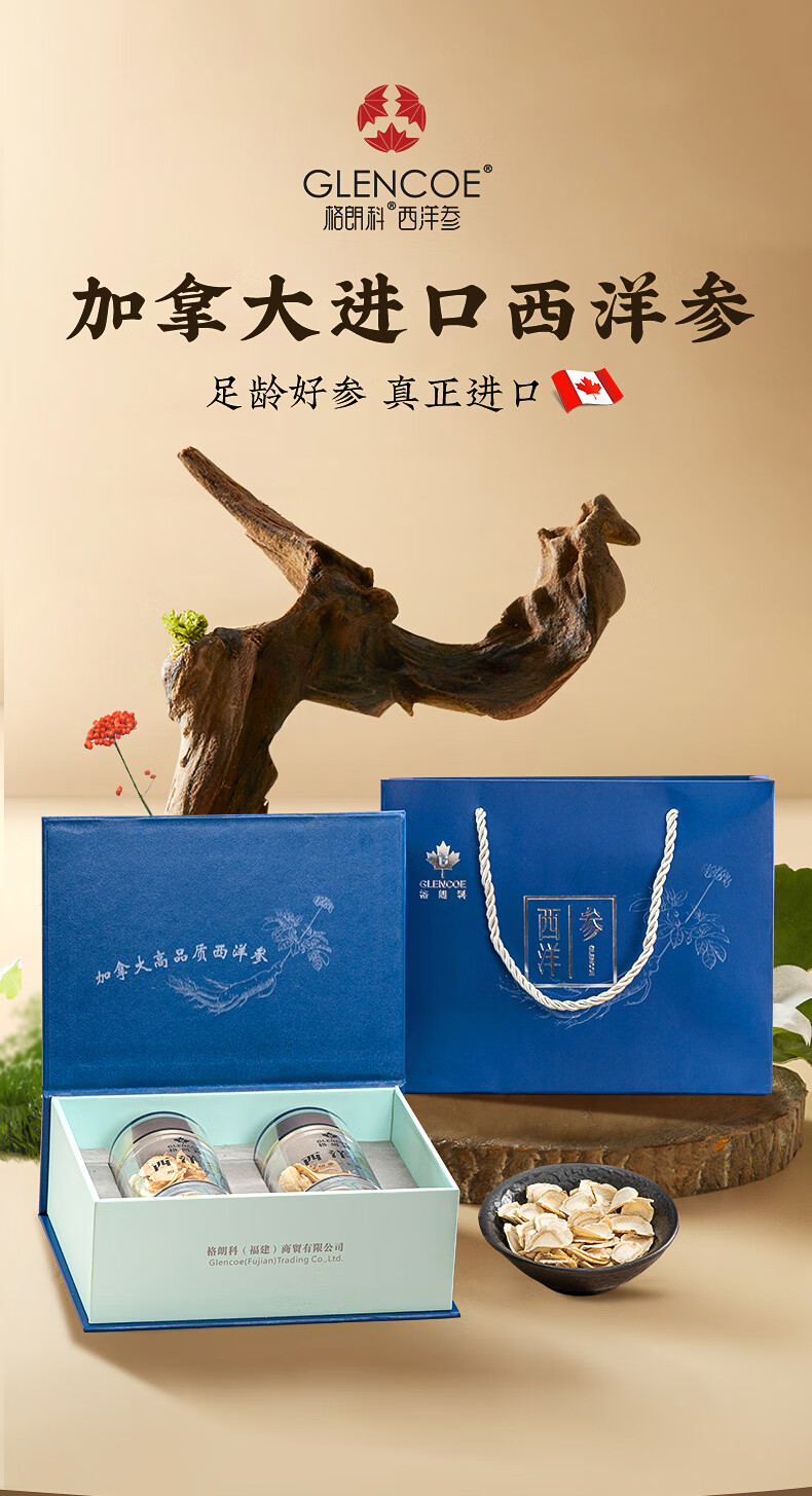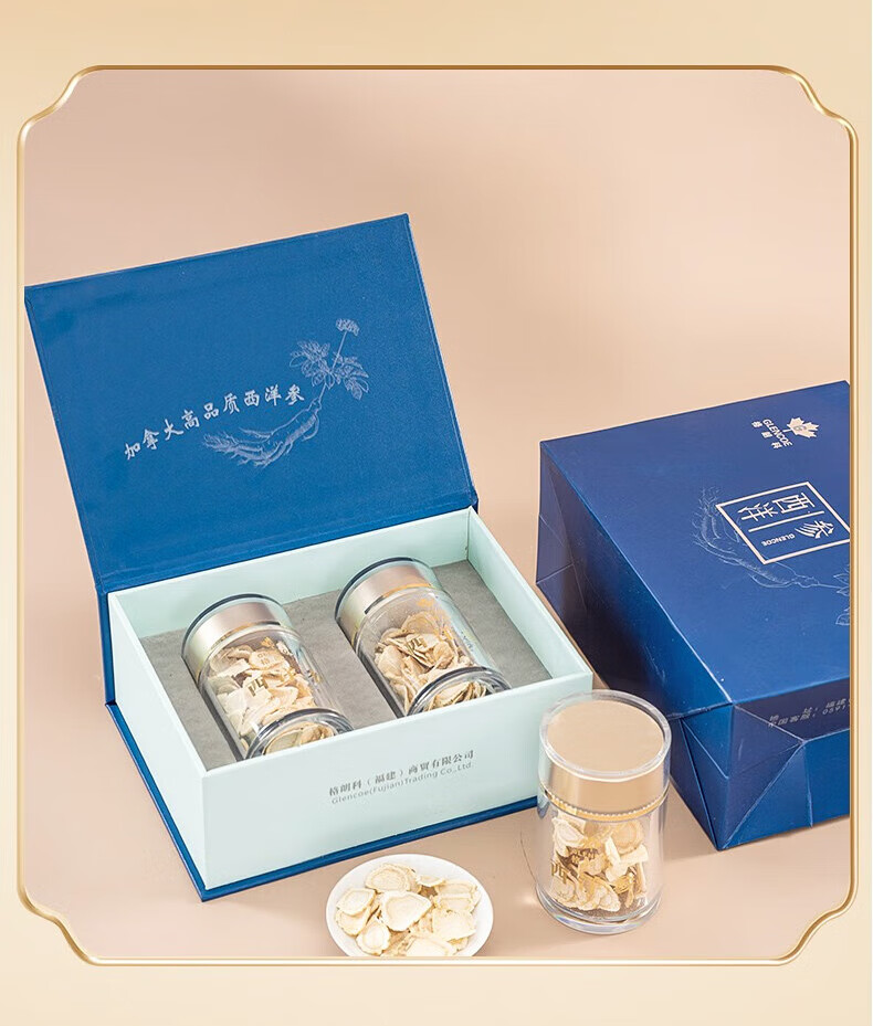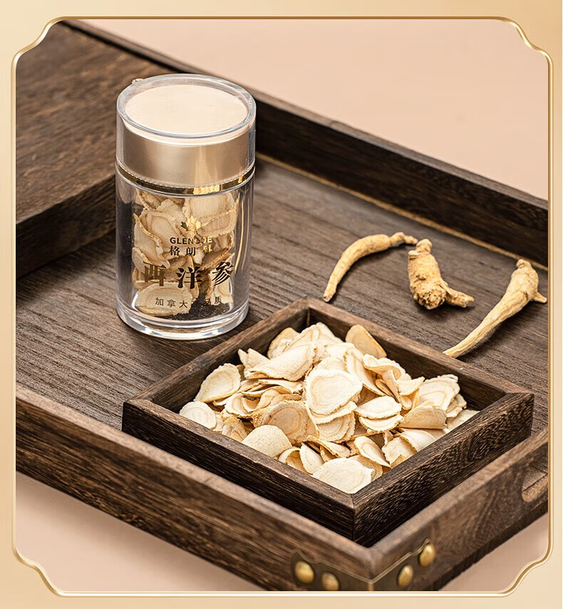 格朗科西洋参片加拿大进口五年花旗参片圆切 70克(35克*2瓶) 5年特级中片礼盒(平均片径15MM)