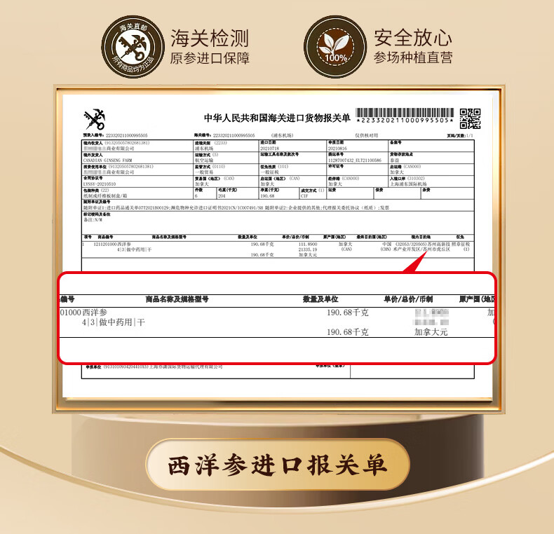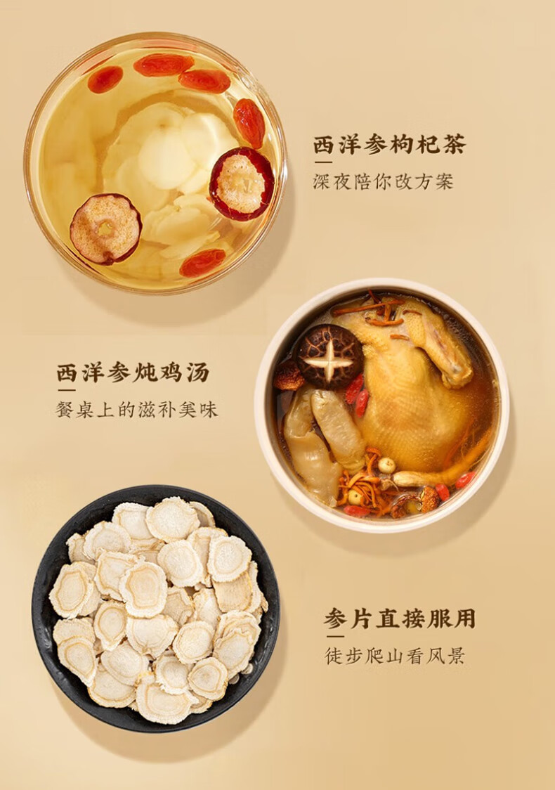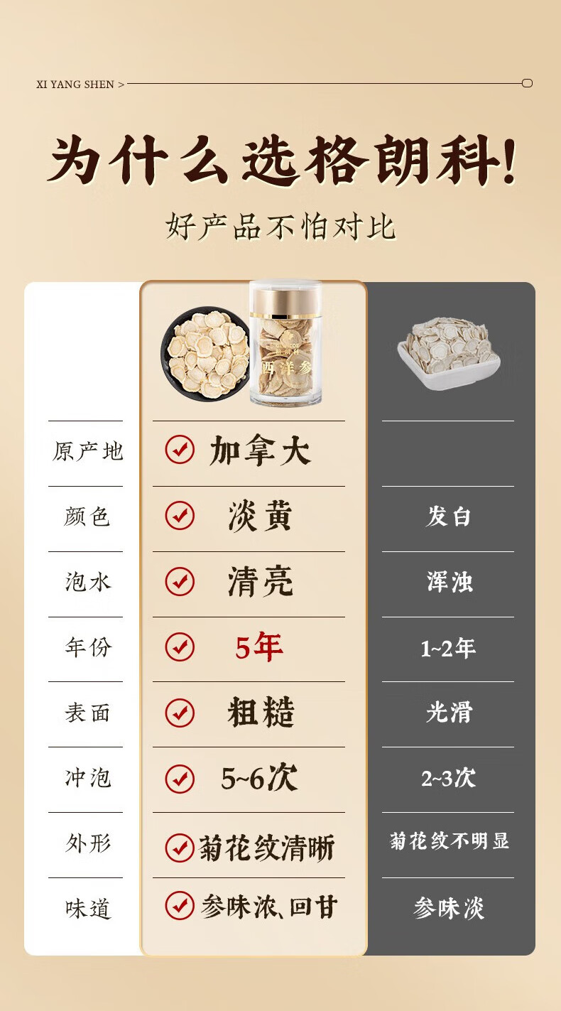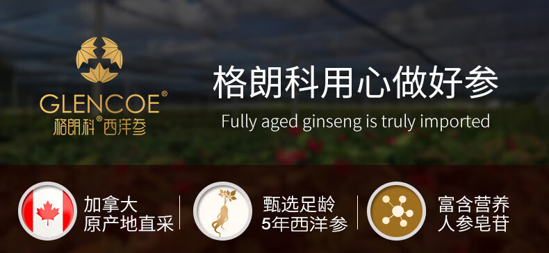 格朗科西洋参片加拿大进口五年花旗参片圆切 70克(35克*2瓶) 5年特级中片礼盒(平均片径15MM)
