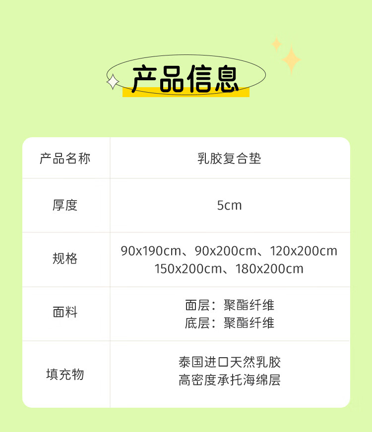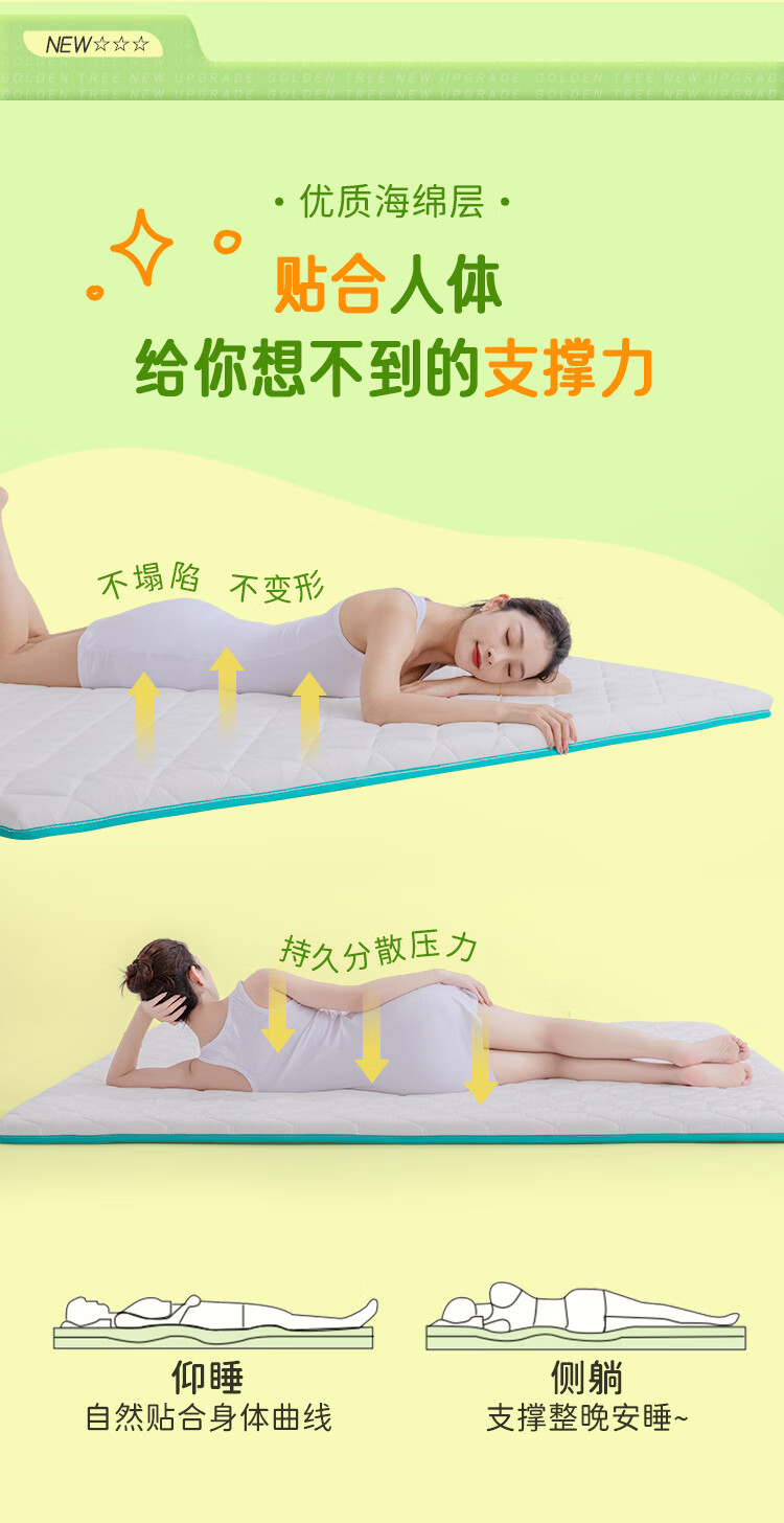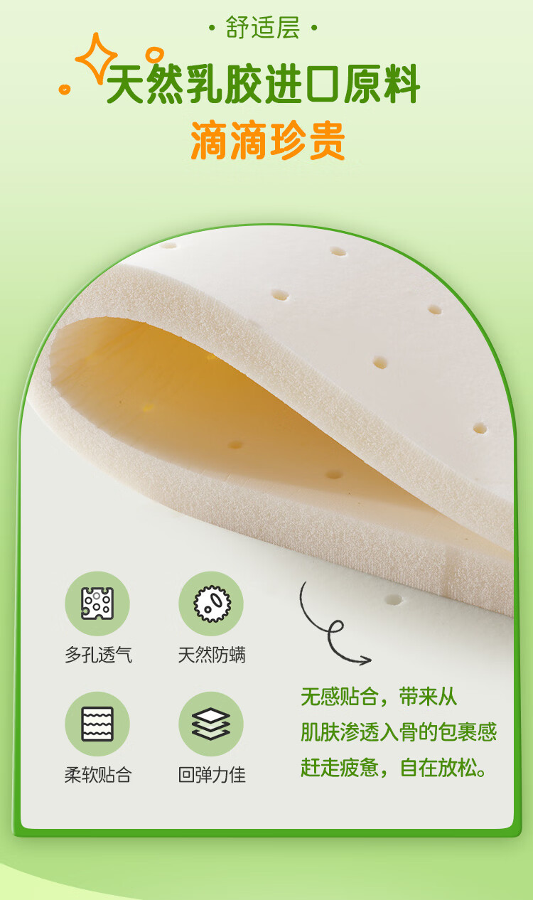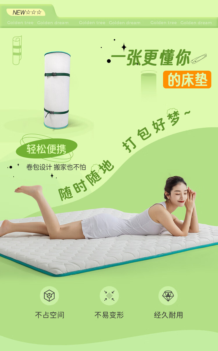 金橡树泰国天然乳胶复合床垫榻榻米单人双人软垫 防螨可折叠 天然乳胶床垫 90*200*5cm
