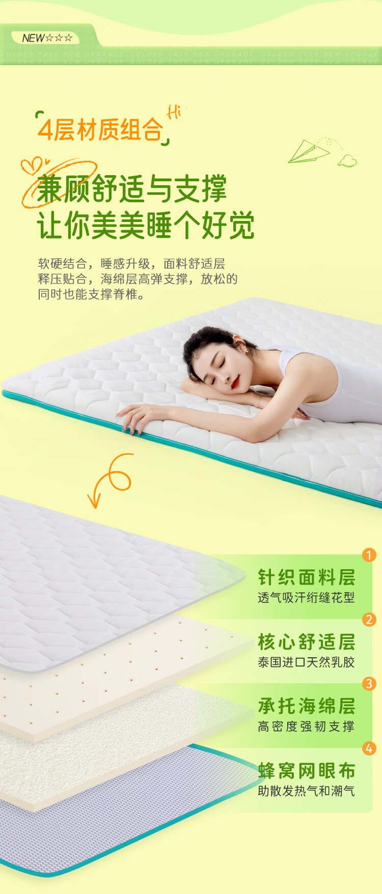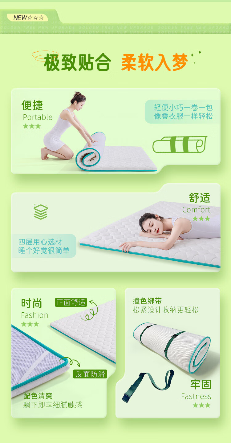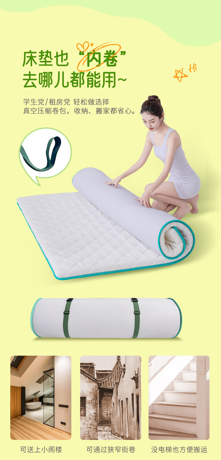 金橡树泰国天然乳胶复合床垫榻榻米单人双人软垫 防螨可折叠 天然乳胶床垫 90*200*5cm