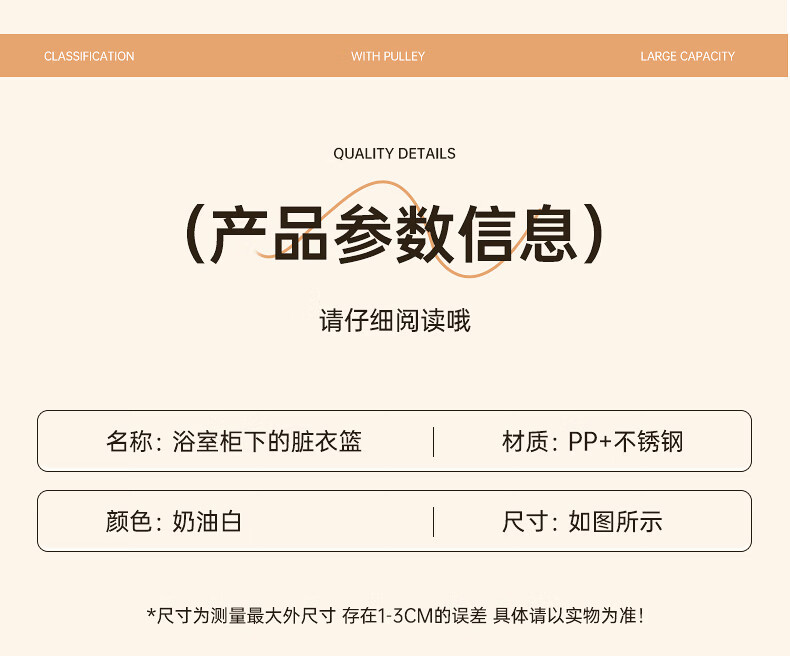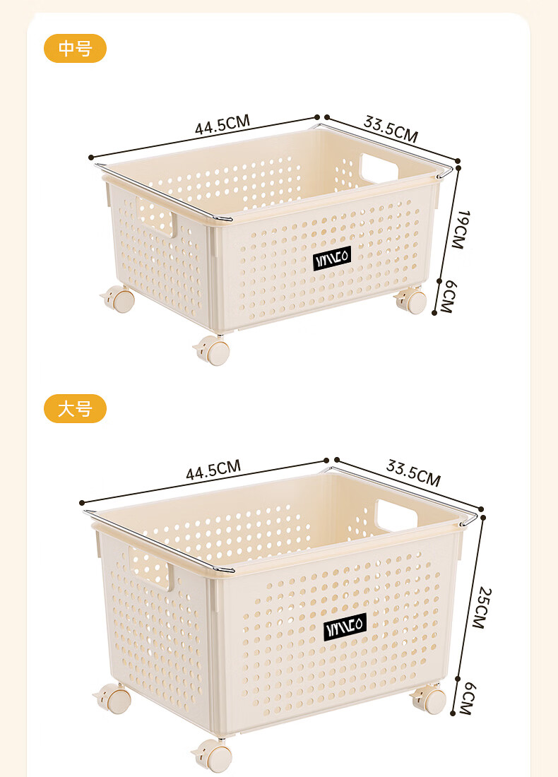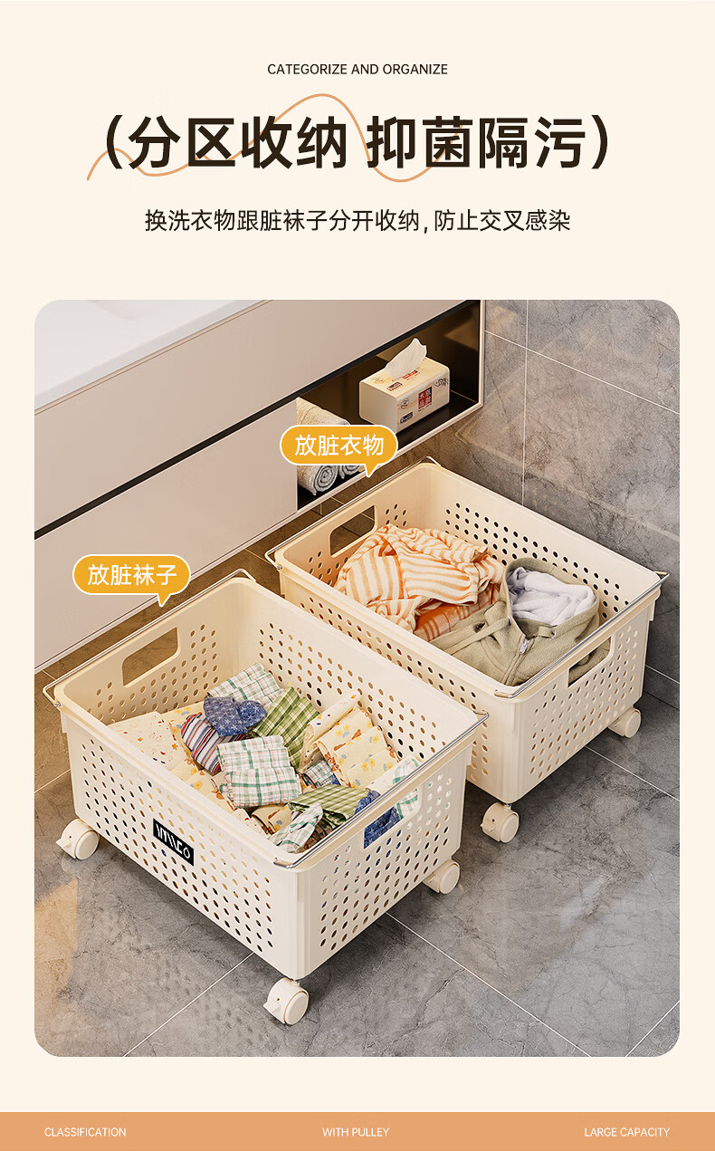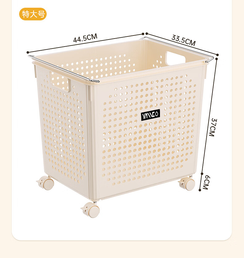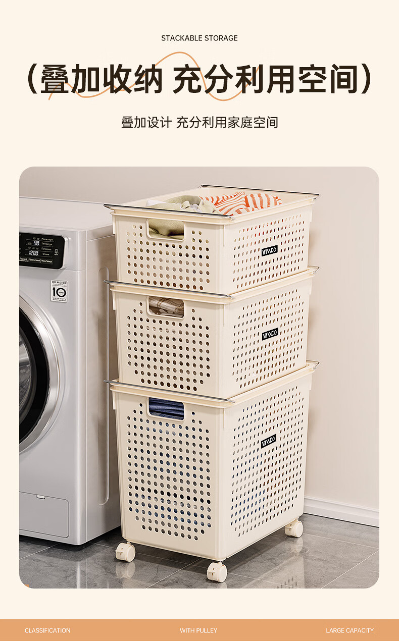 稻草熊家用脏衣篮浴室柜下脏衣篓带轮脏衣收纳提篮【新家的100个快递】 中号【加厚升级*加大容量*万向滑轮】