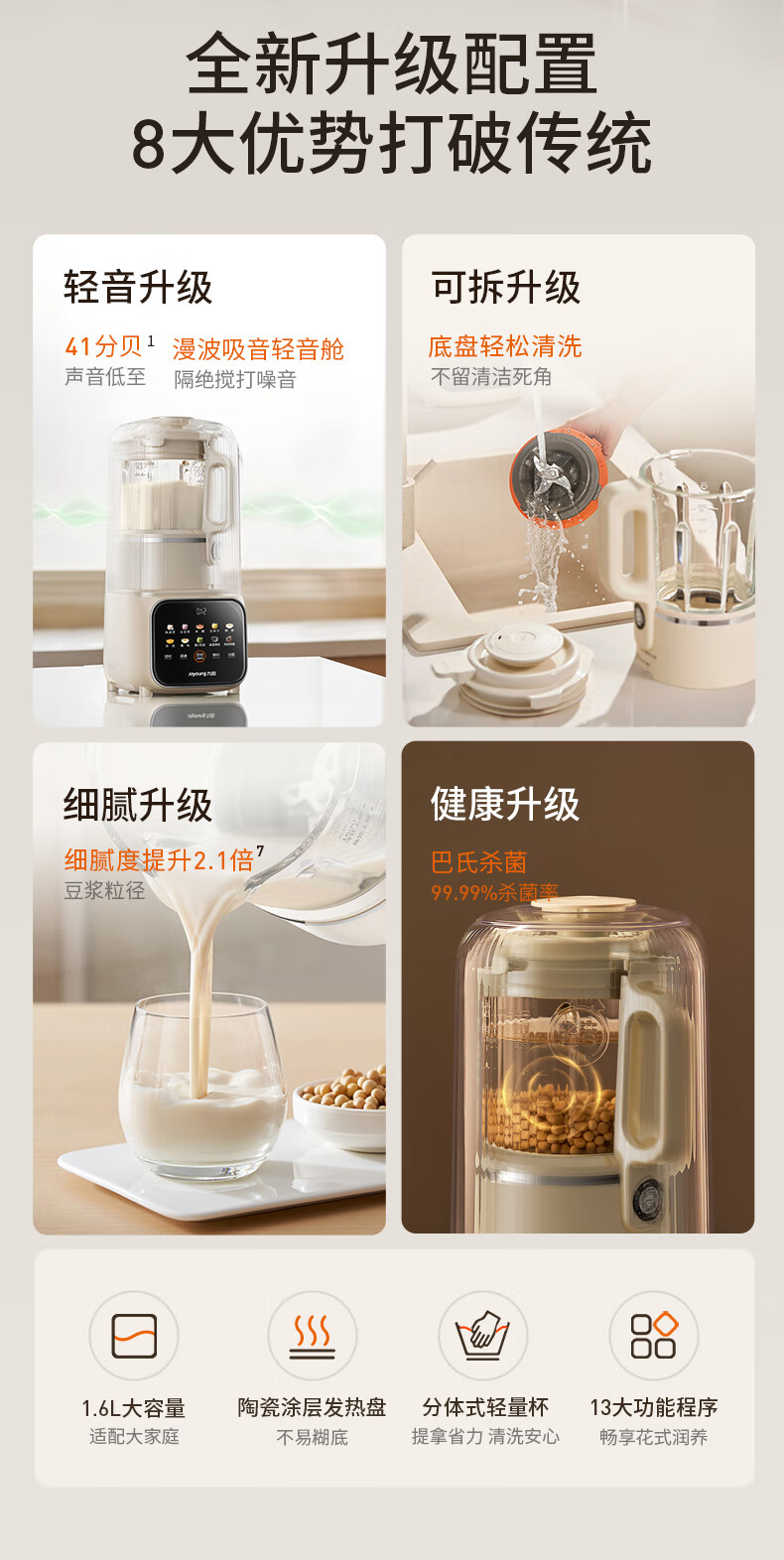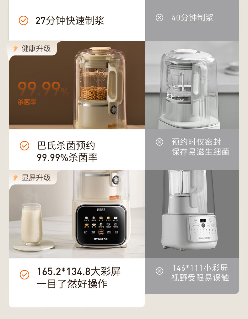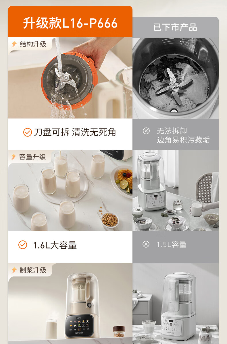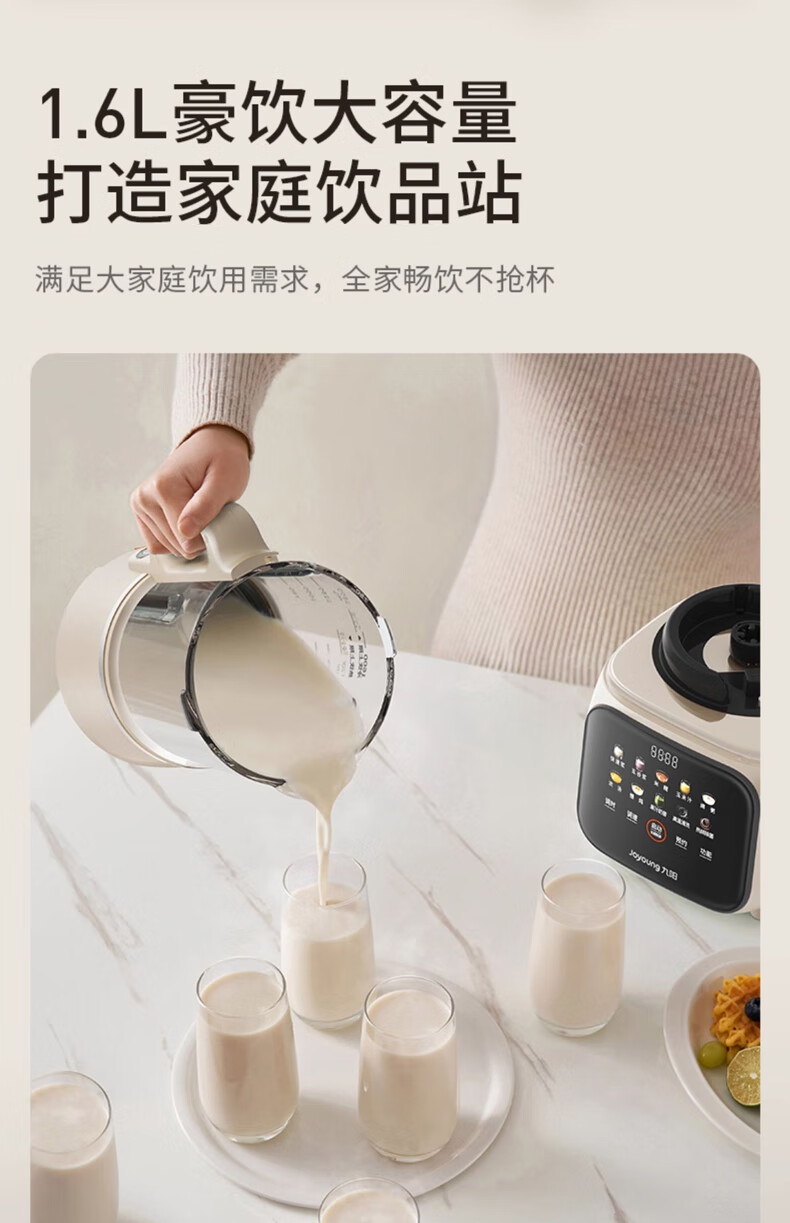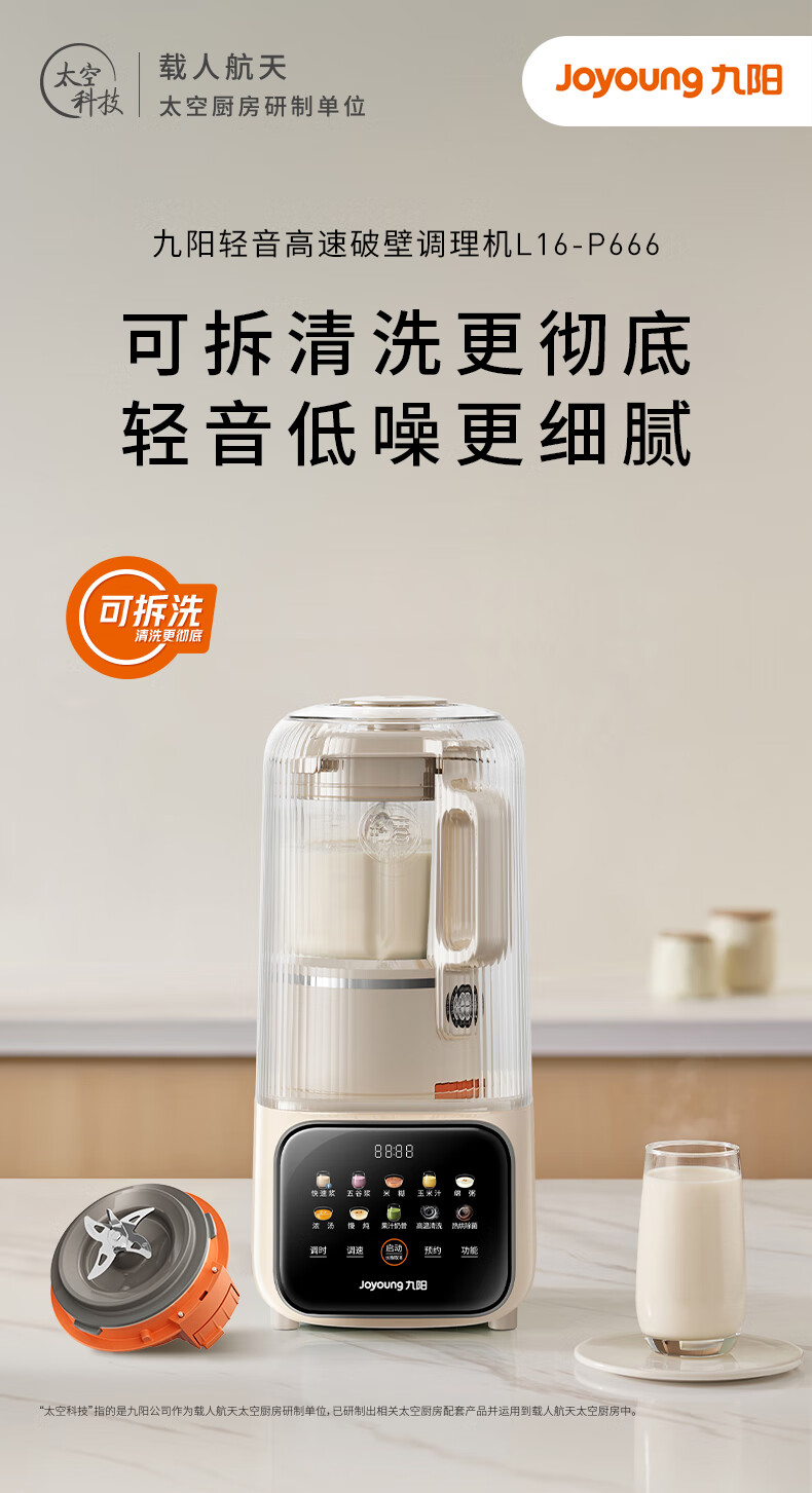 九阳可拆洗破壁机全自动免煮2025新款豆浆机家用大容量1.6L3-4人用多功能榨果汁料理冰沙流食辅食机 【细腻免过滤 清洁无死角】P666