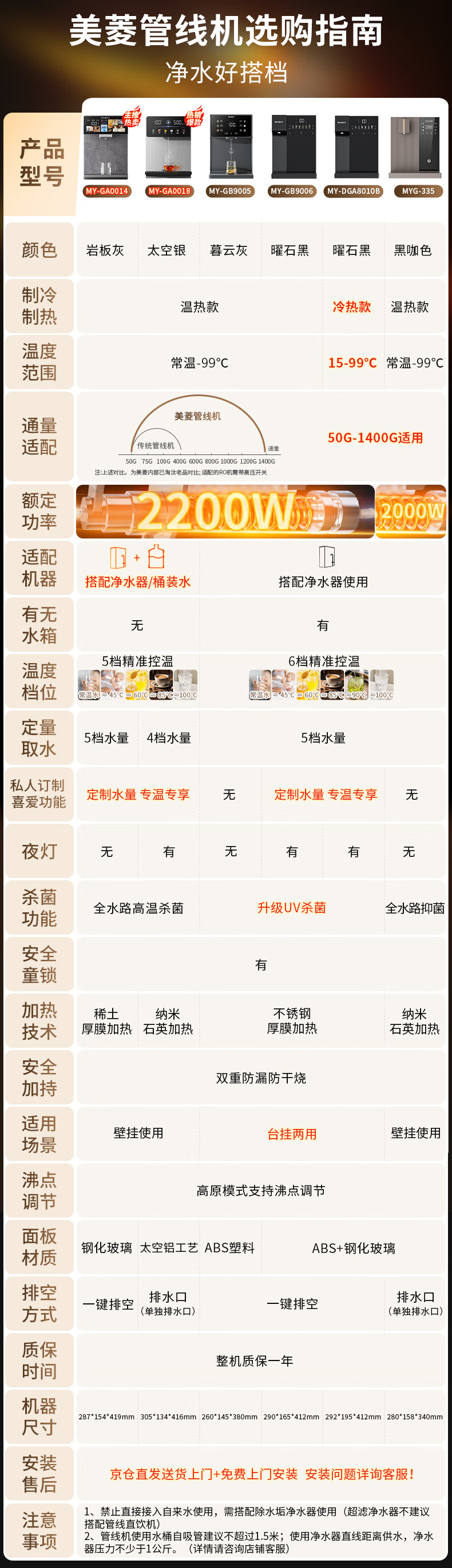 美菱(MeiLing)管线机壁挂式直饮水机台式加热一体机家用净水器伴侣全通量适配6档调温速热直饮机MY-GB9005