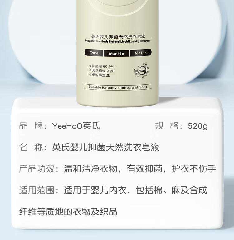 英氏婴儿洗衣皂液洗衣液 抑菌天然宝宝内衣内裤洗衣液520g