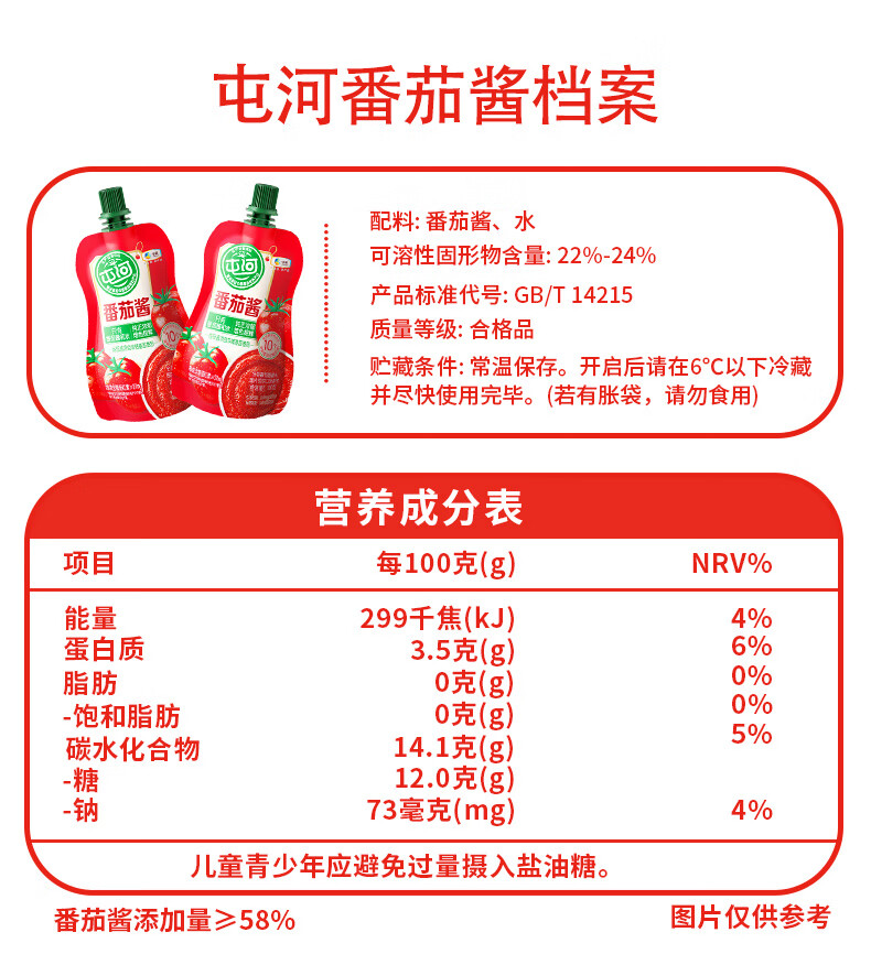 屯河番茄酱小包装0添加剂新疆内蒙番茄调味酱儿童宝宝意面酱番茄沙司 100g*5袋