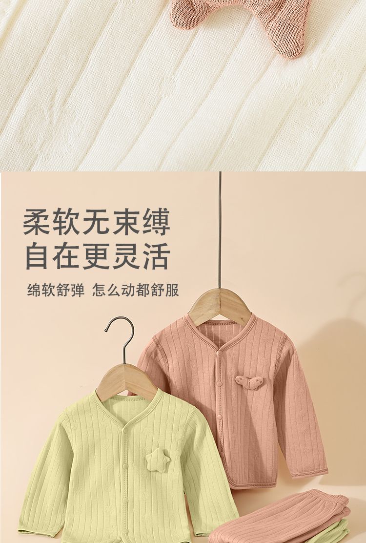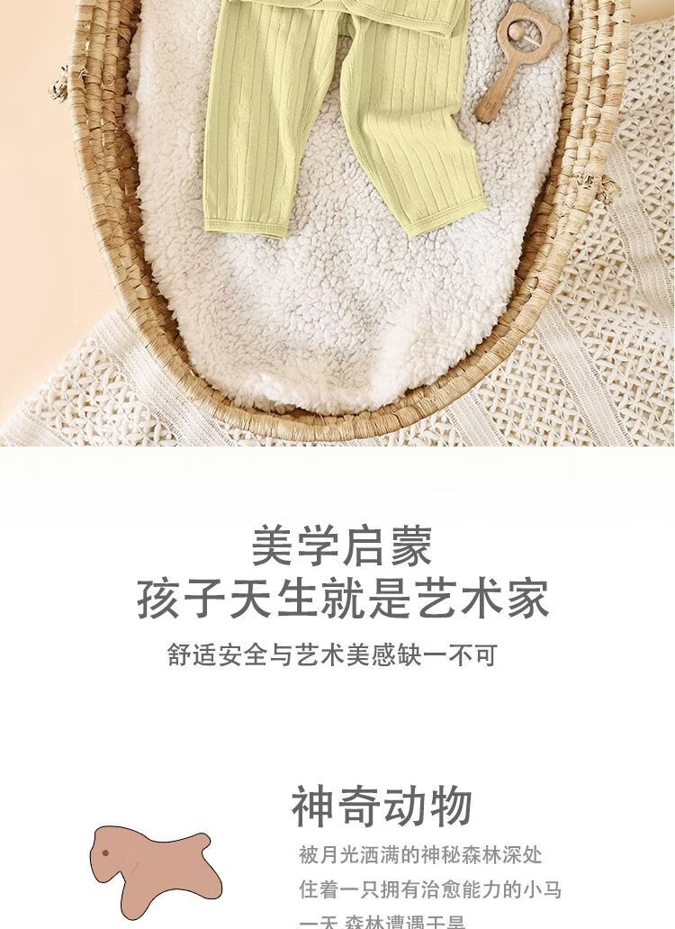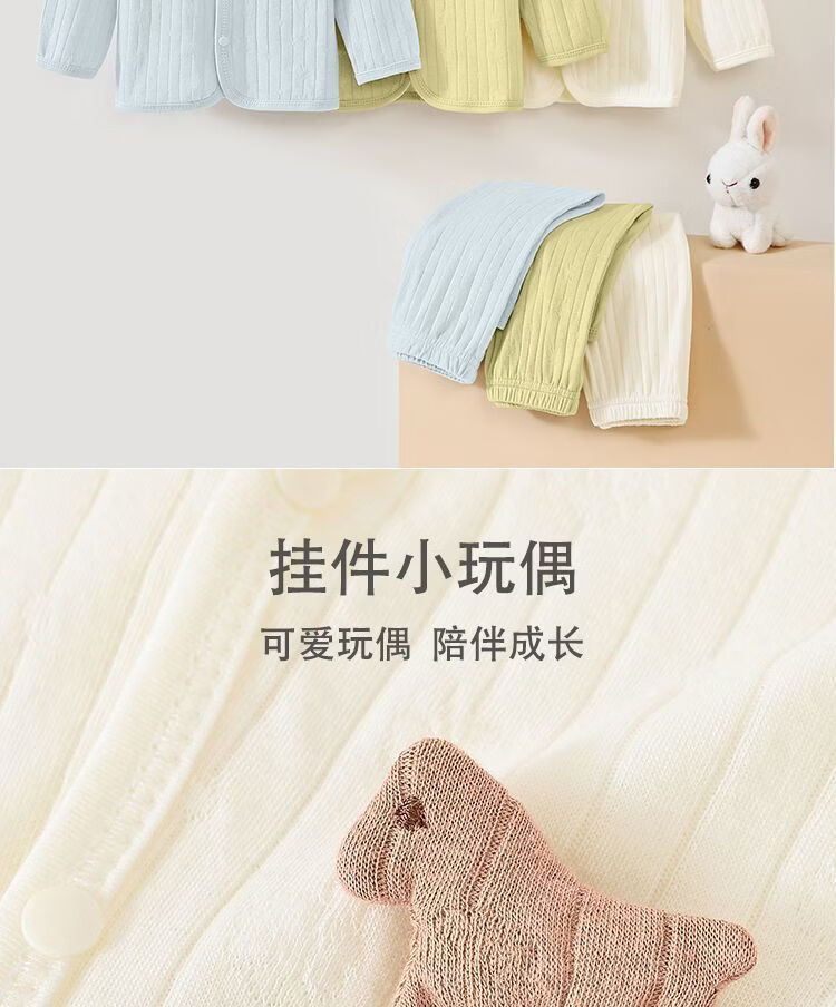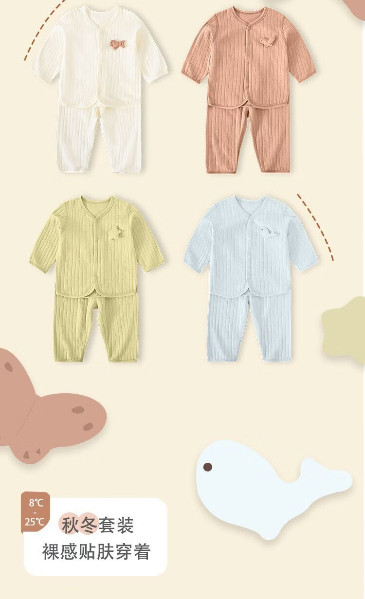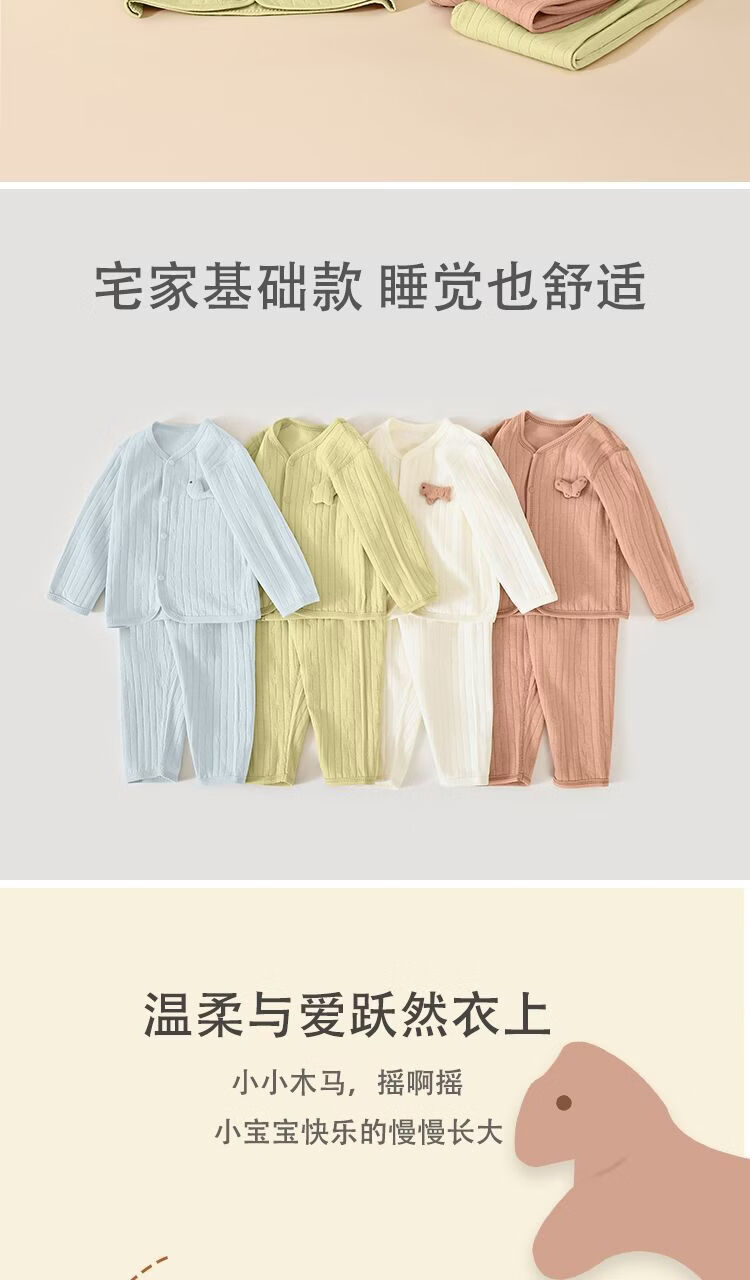 皮偌乔 PO&JO儿童纯棉秋衣秋裤宝宝分体套装提花睡衣家居服婴幼儿上衣裤子 豆沙 110 码