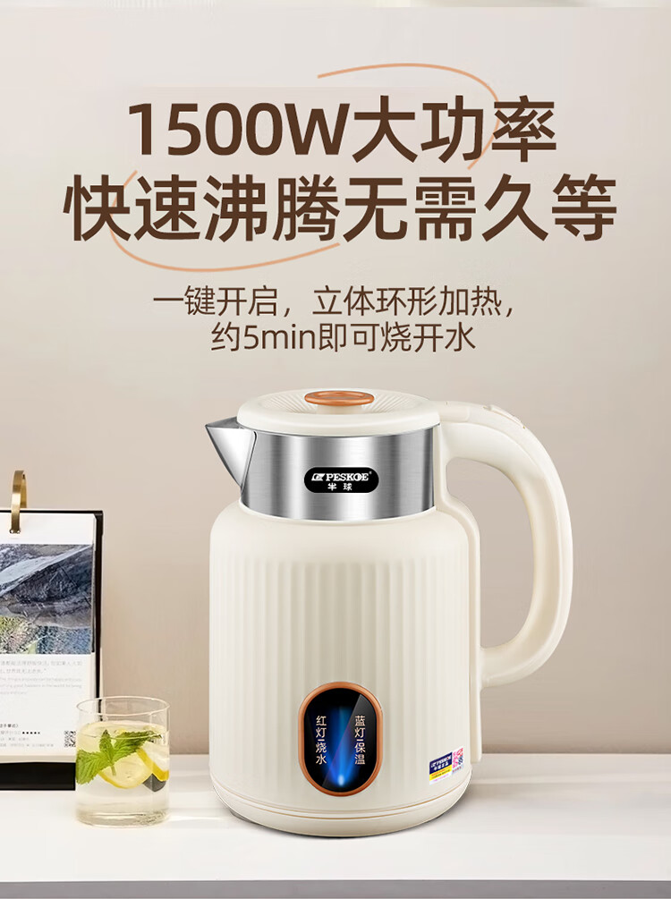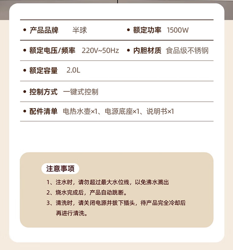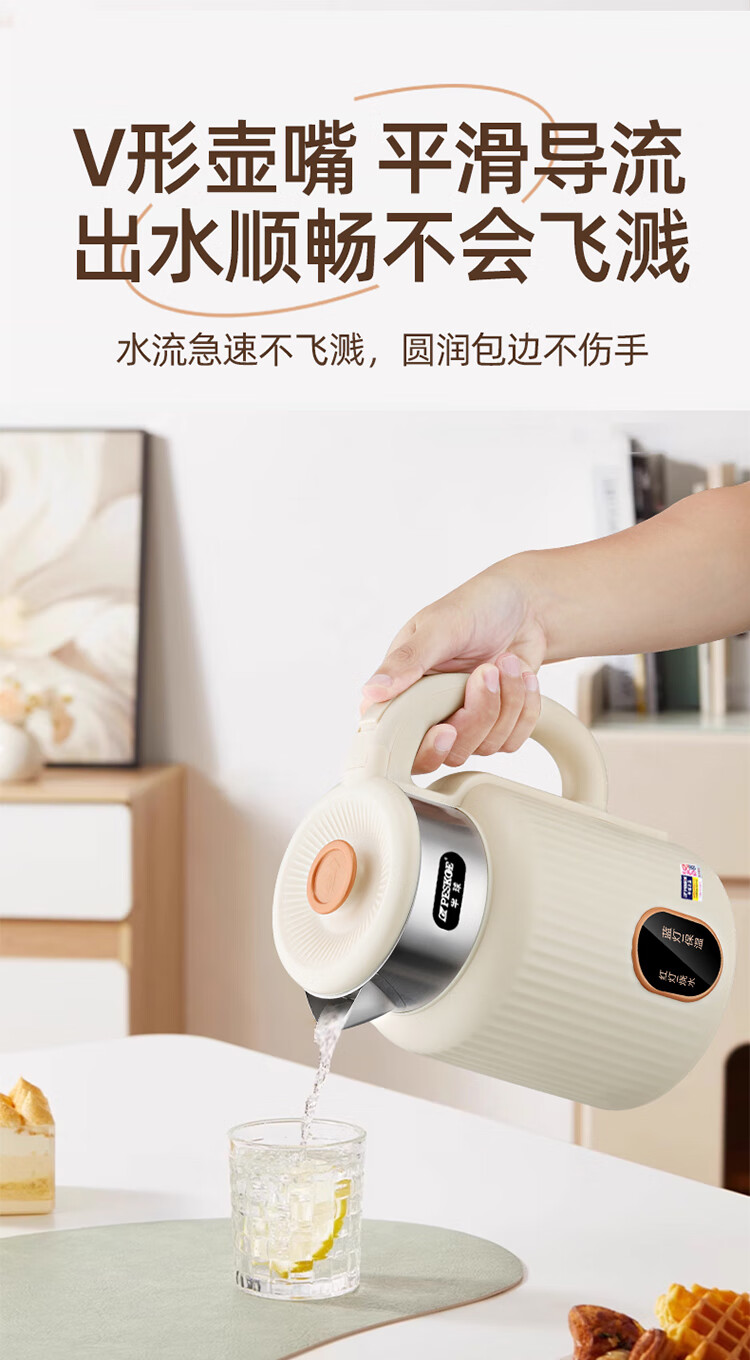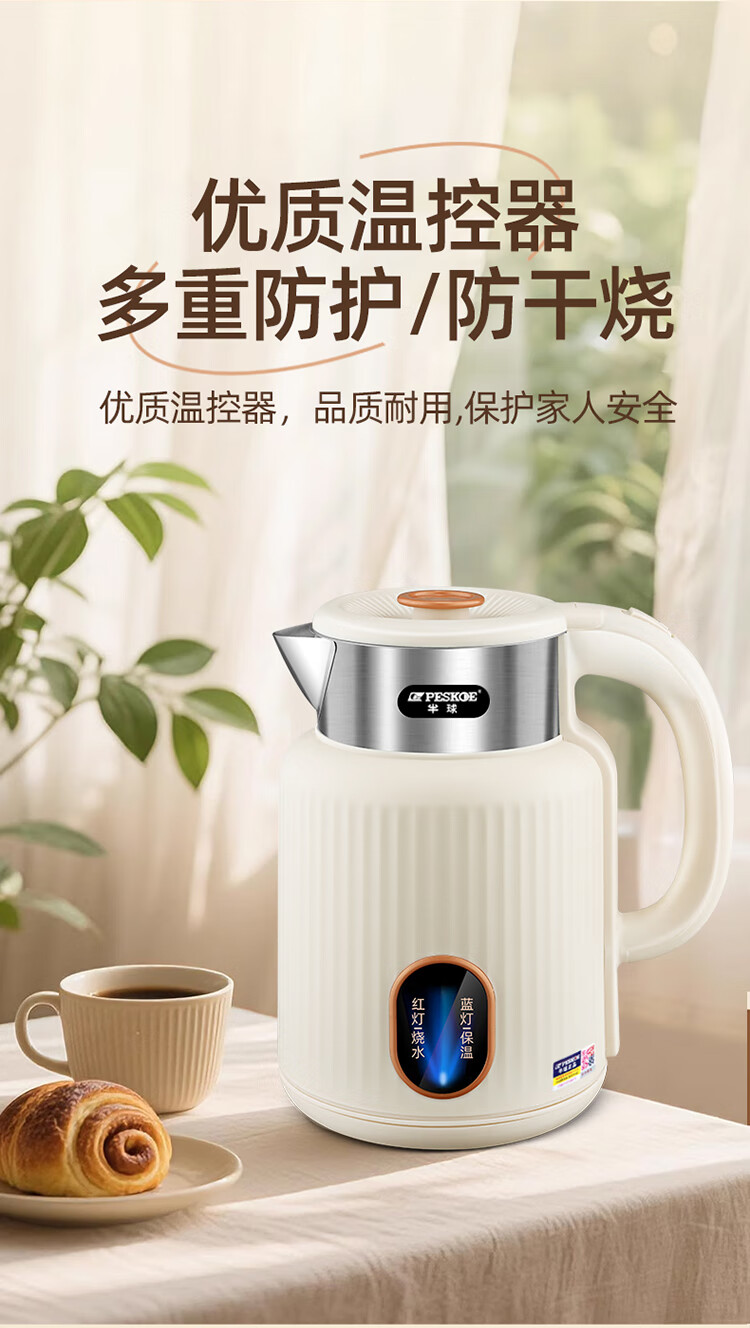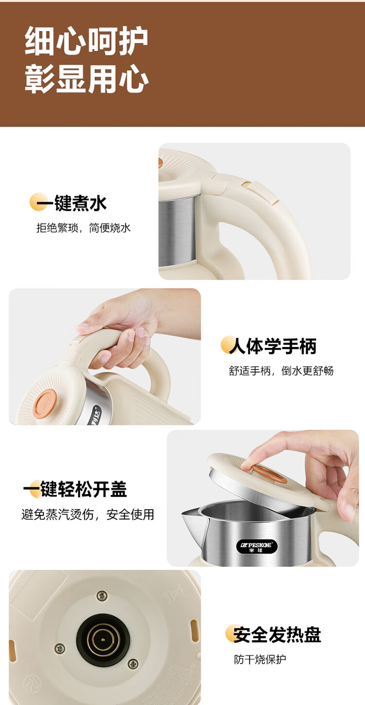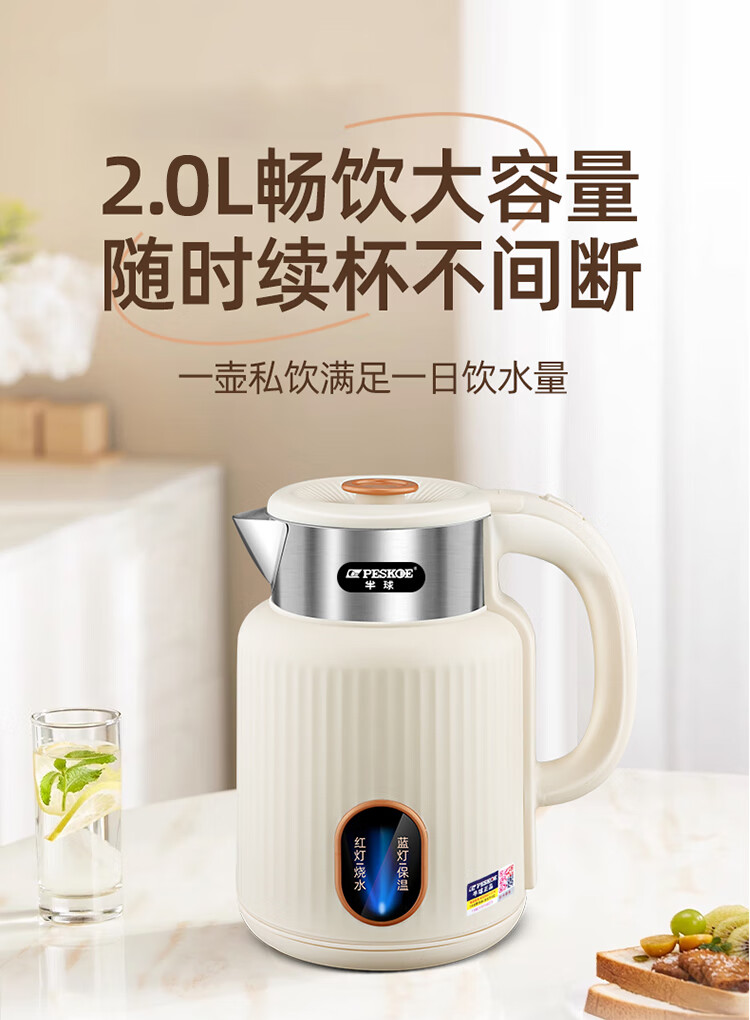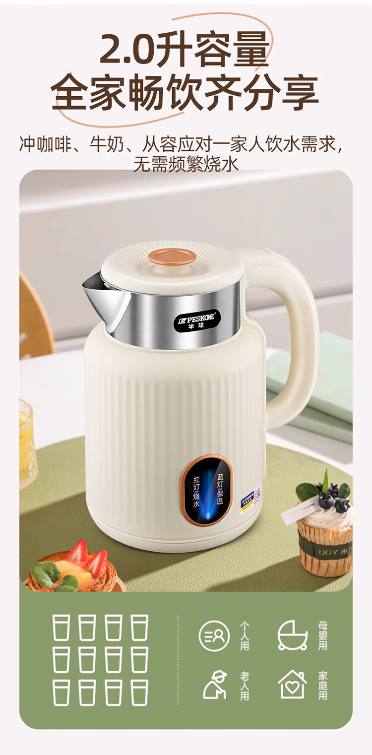 半球【精选直发】烧水壶不锈钢热水壶酒店宿舍电热水壶保温一体电水壶大容量家用快速壶开水壶恒温水壶 2L 【米色+智能保温】/次日达