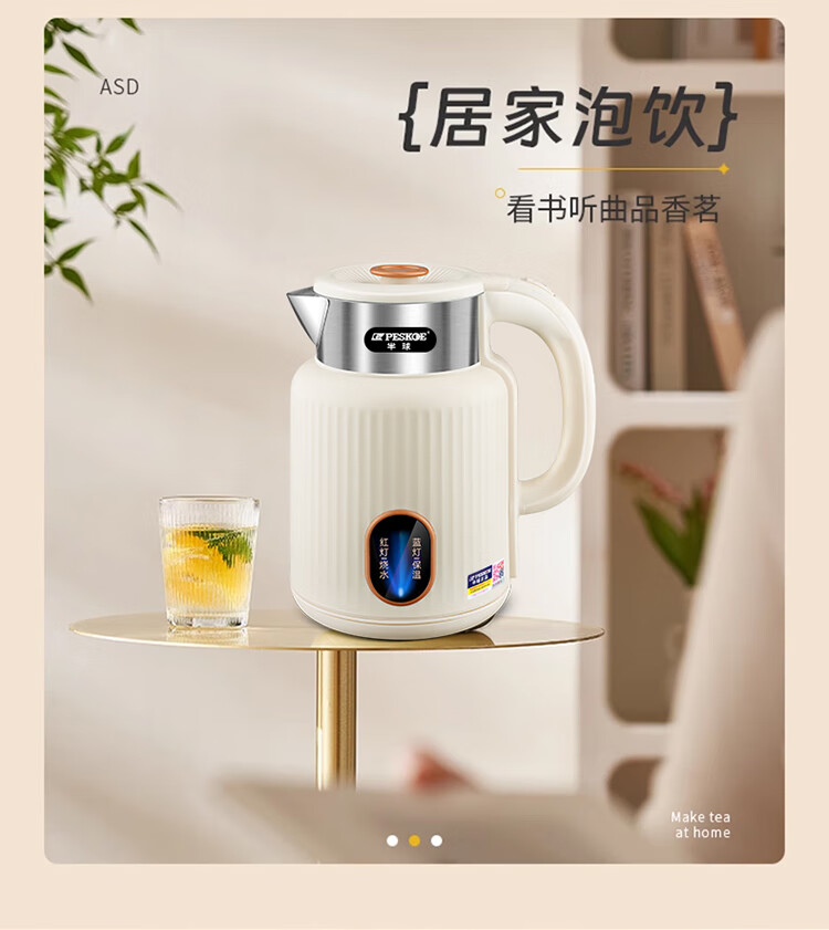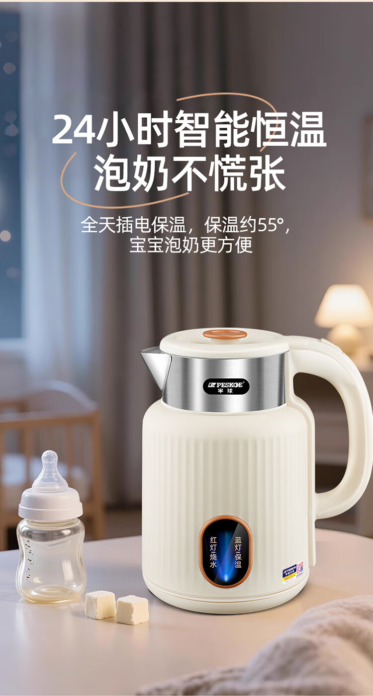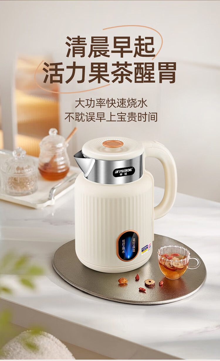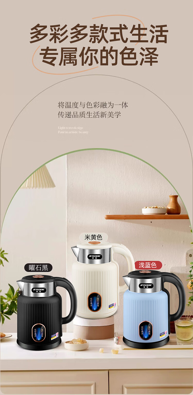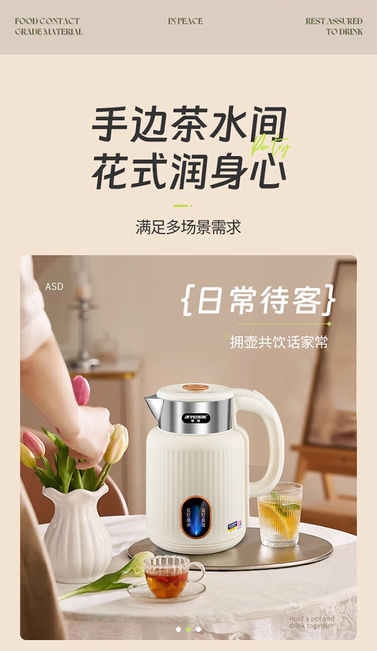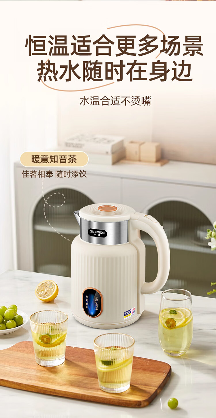 半球【精选直发】烧水壶不锈钢热水壶酒店宿舍电热水壶保温一体电水壶大容量家用快速壶开水壶恒温水壶 2L 【米色+智能保温】/次日达