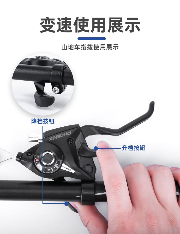 凤凰山地车变速指拨器21/24速自行车连体变速器调速器7/8速前拨后拨刹车线变速带线 凤凰右8速连体指拨【变速线芯+刹车线芯】