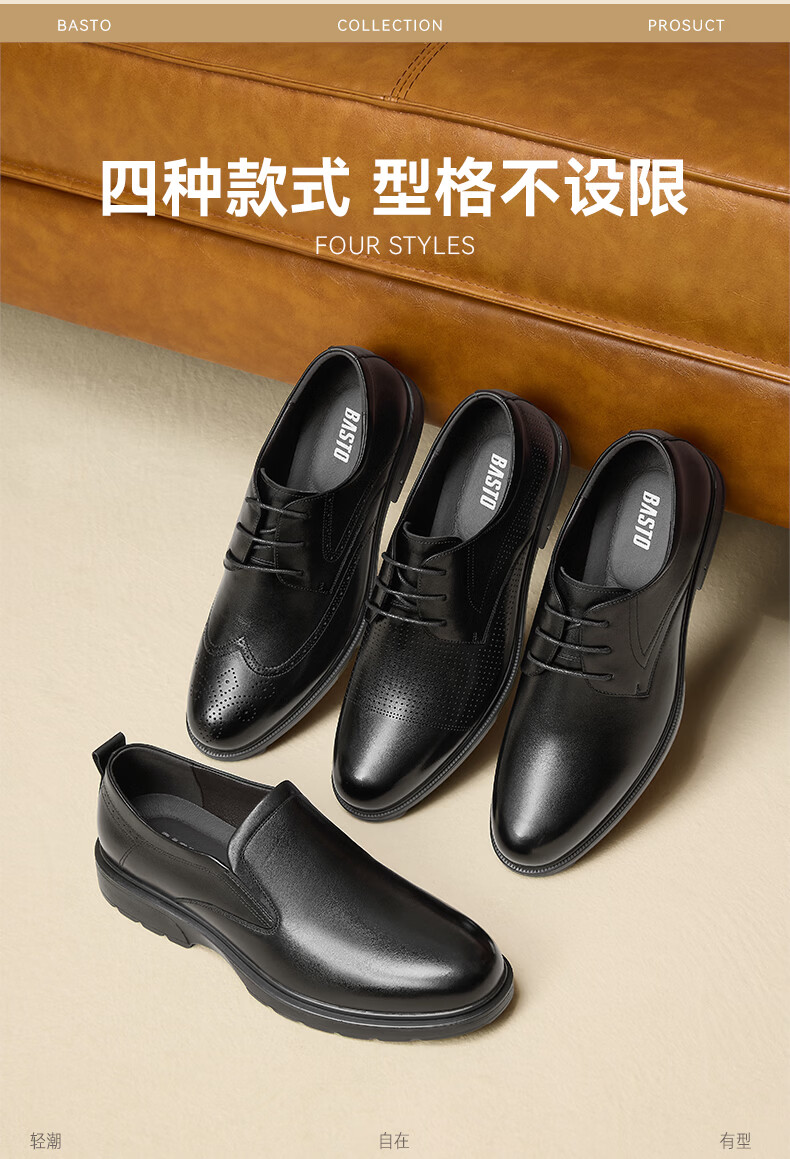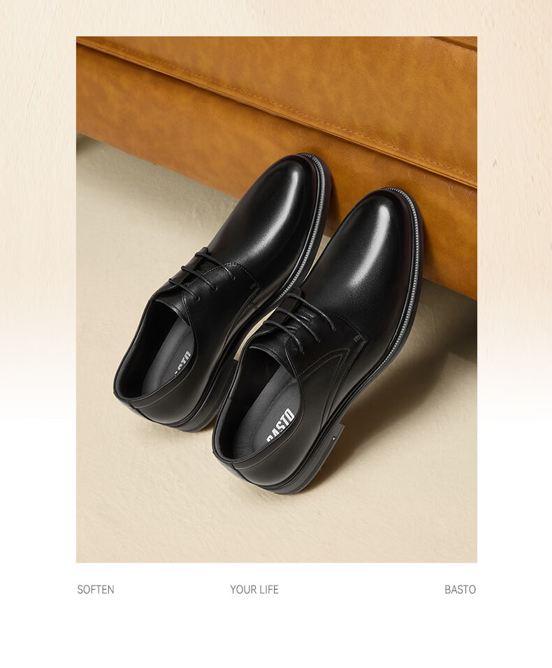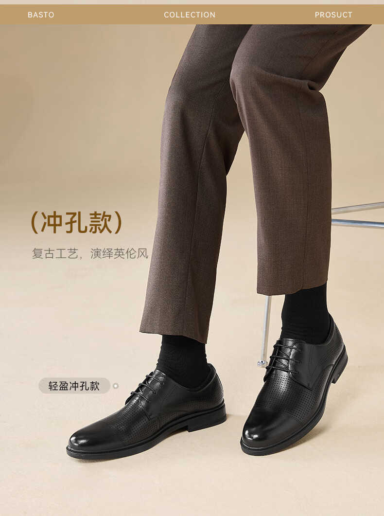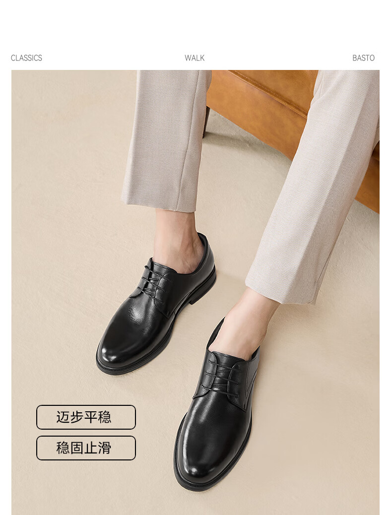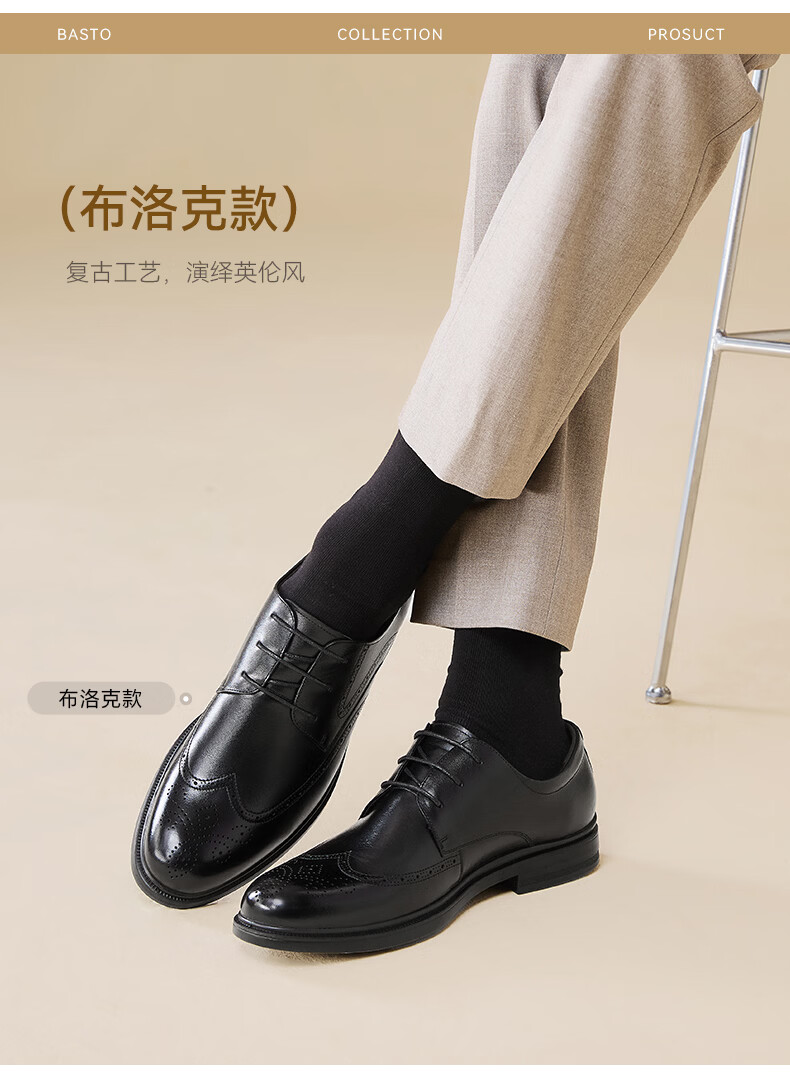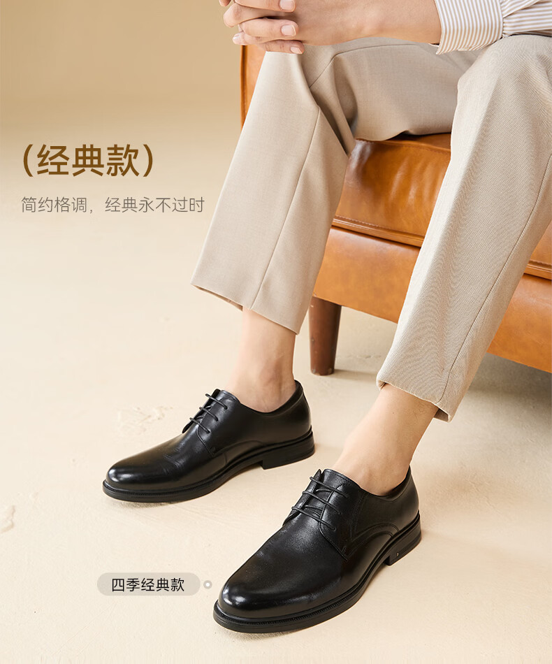 百思图通勤商务皮鞋舒适牛皮男士正装鞋婚鞋25002AM5经典款绒里42
