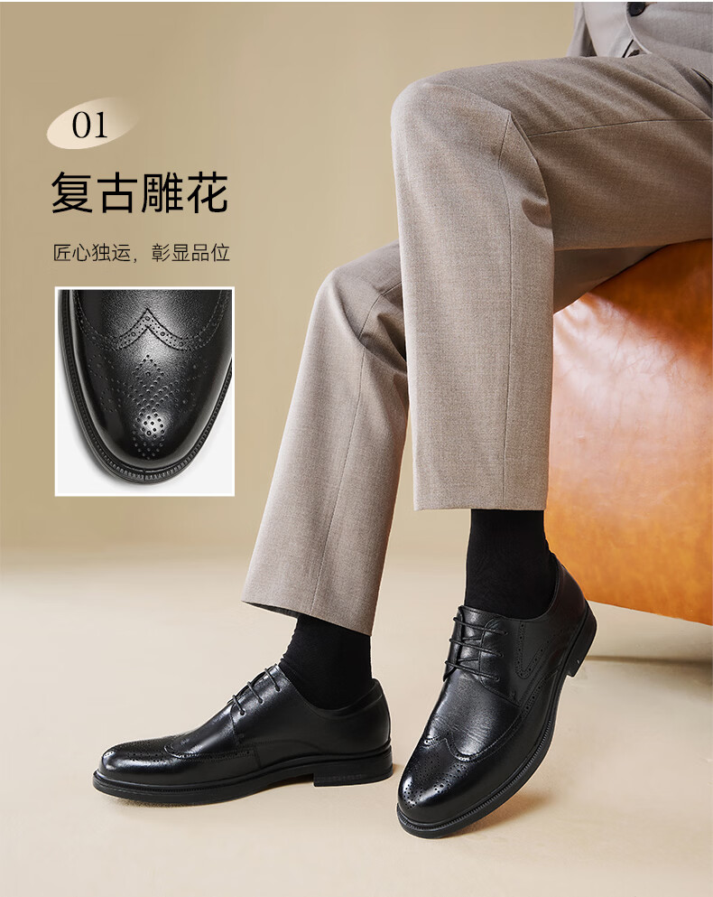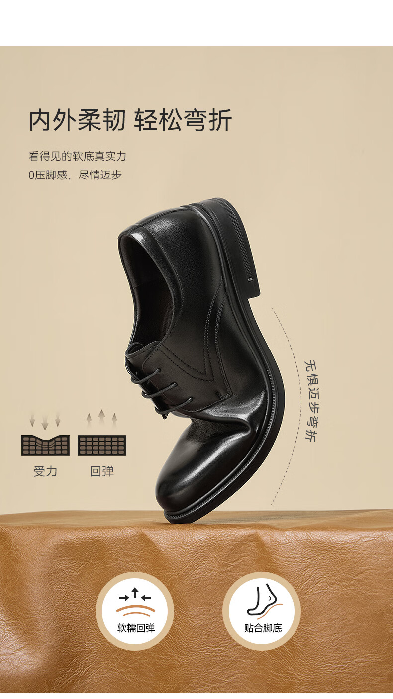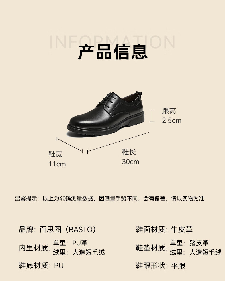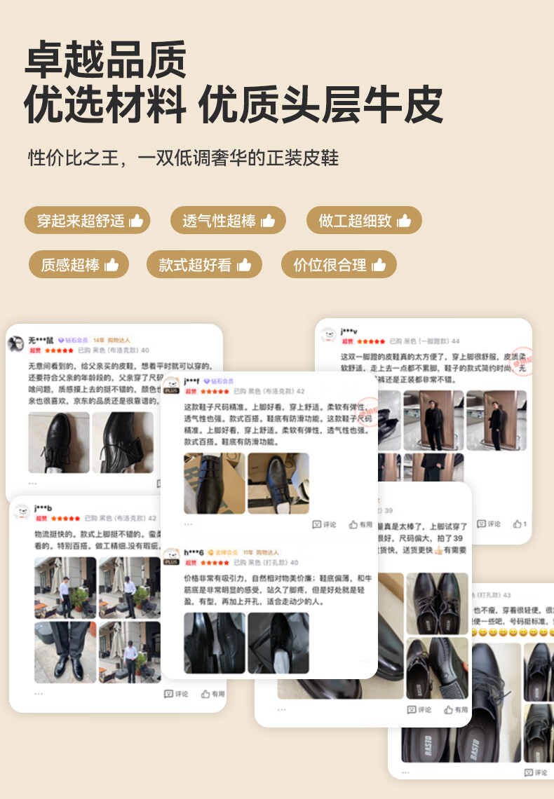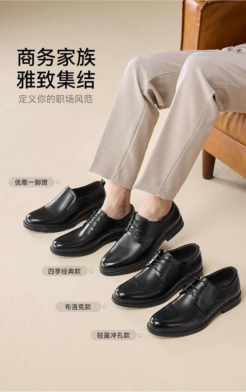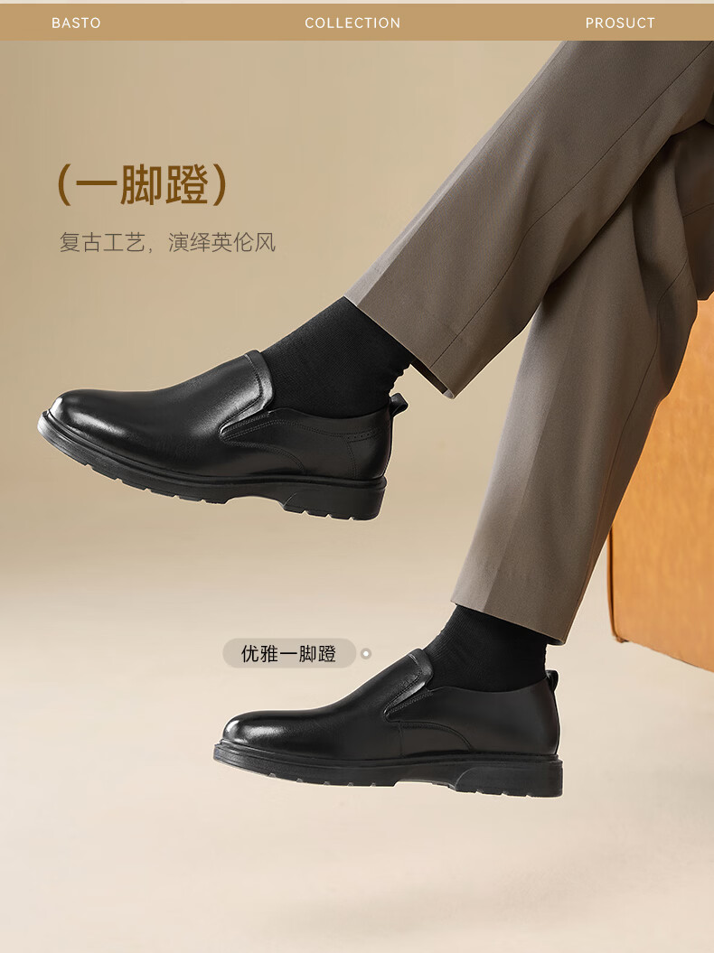 百思图通勤商务皮鞋舒适牛皮男士正装鞋婚鞋25002AM5经典款绒里42