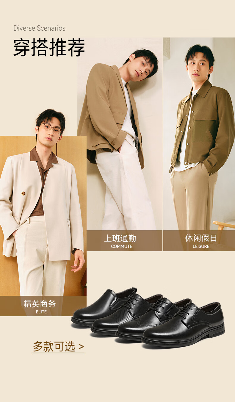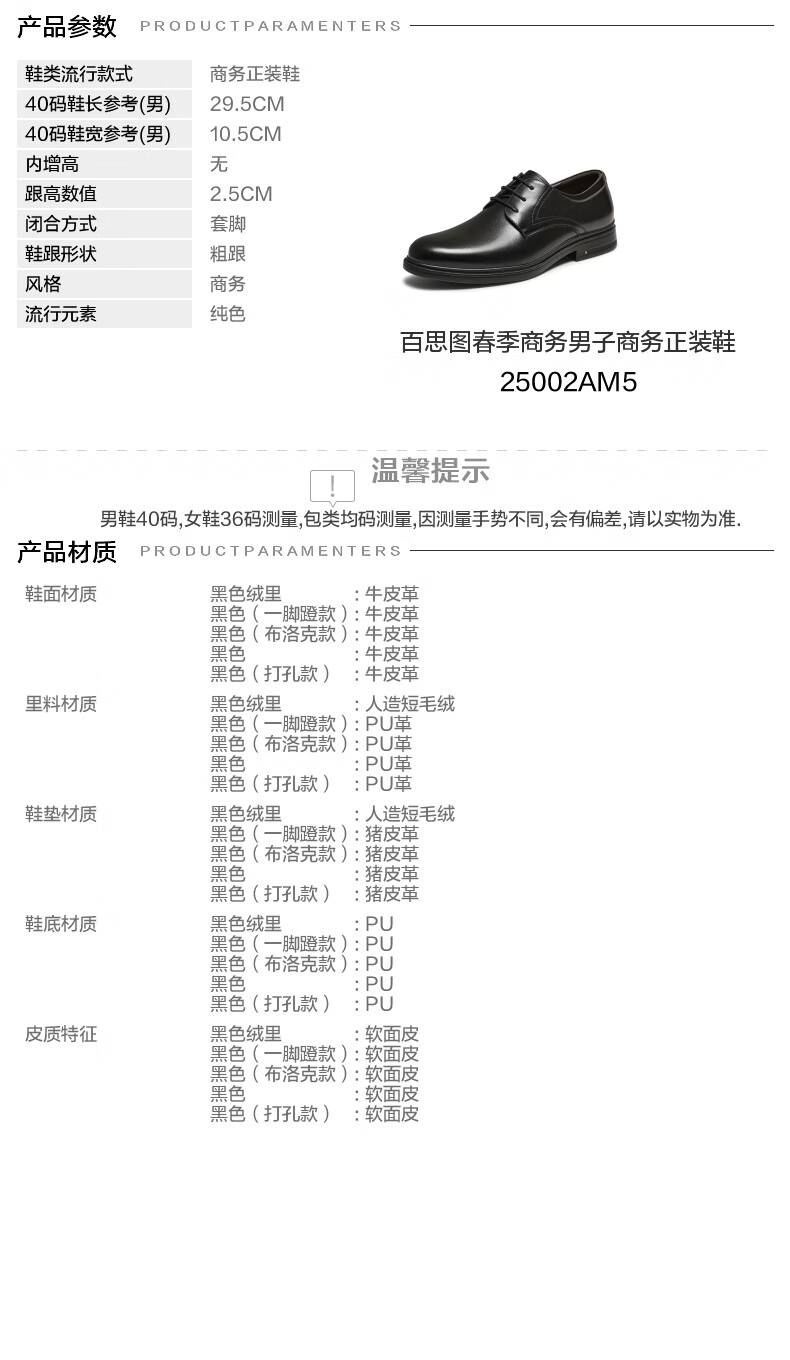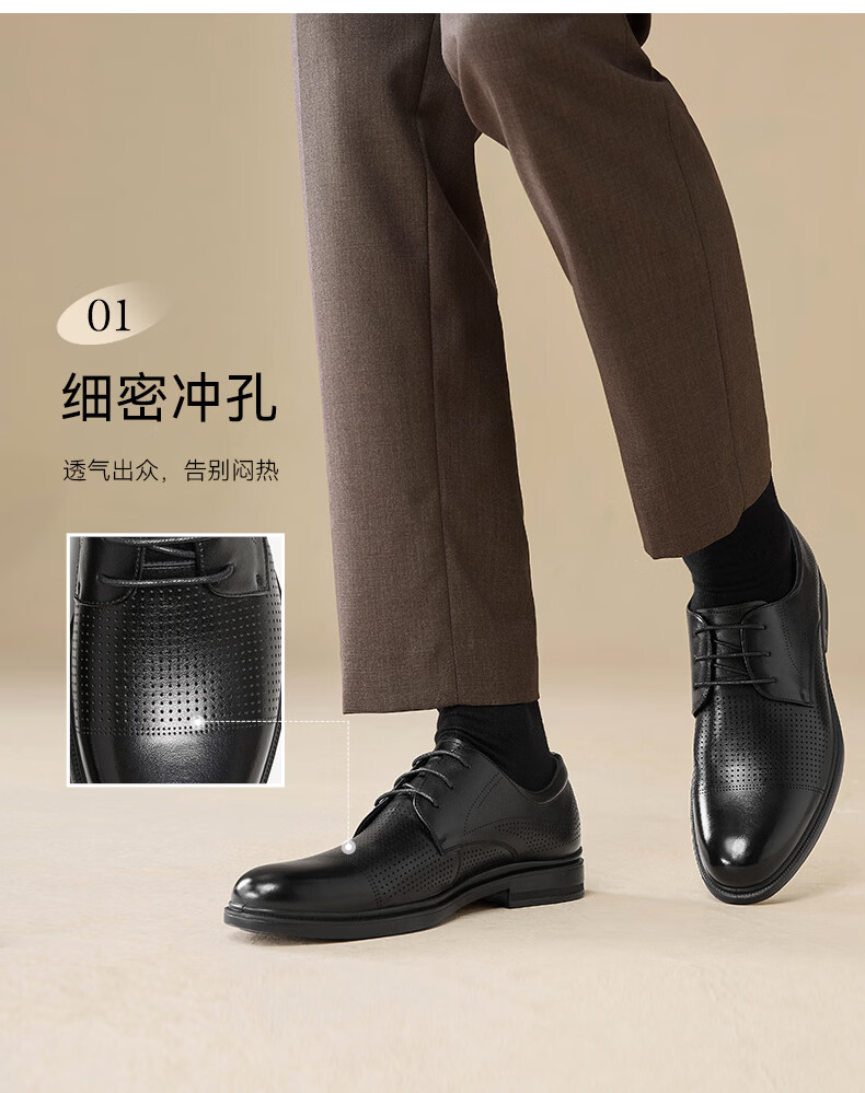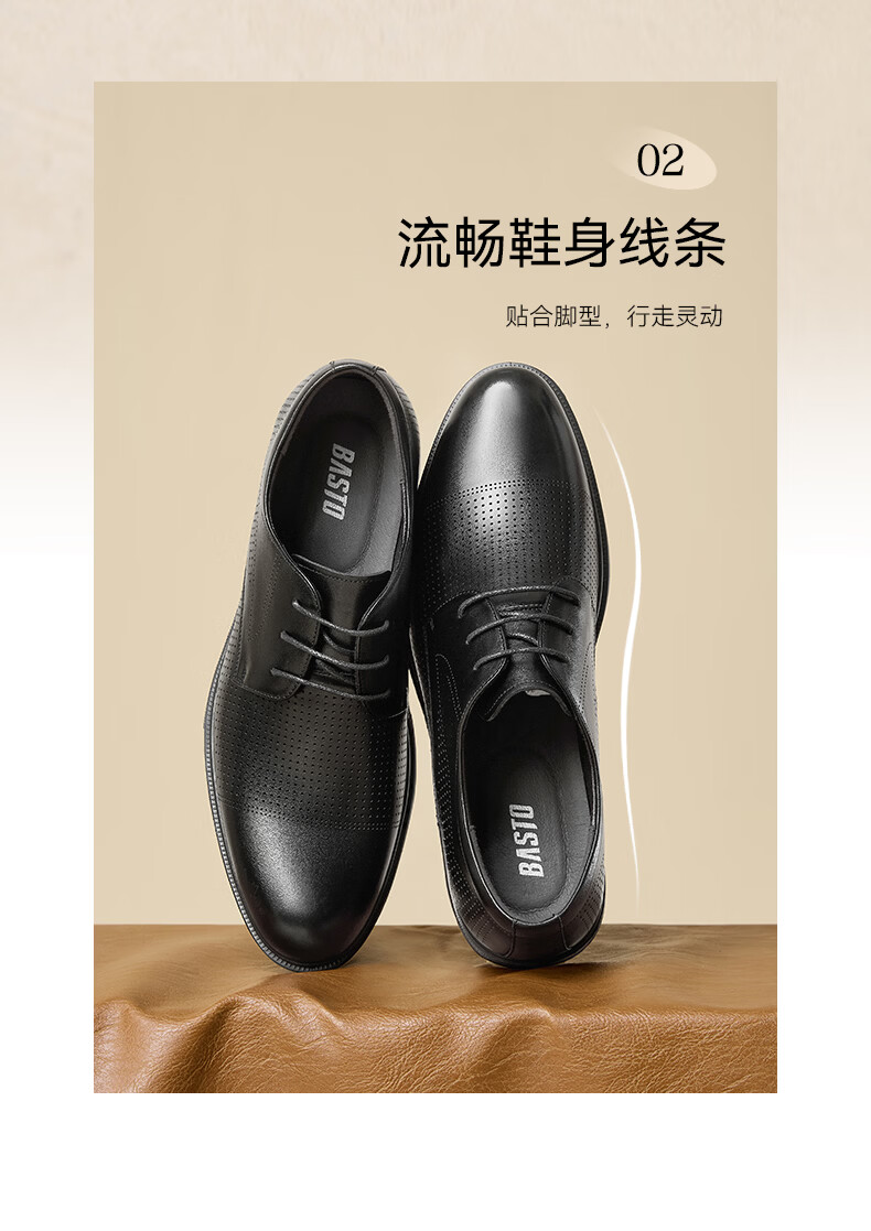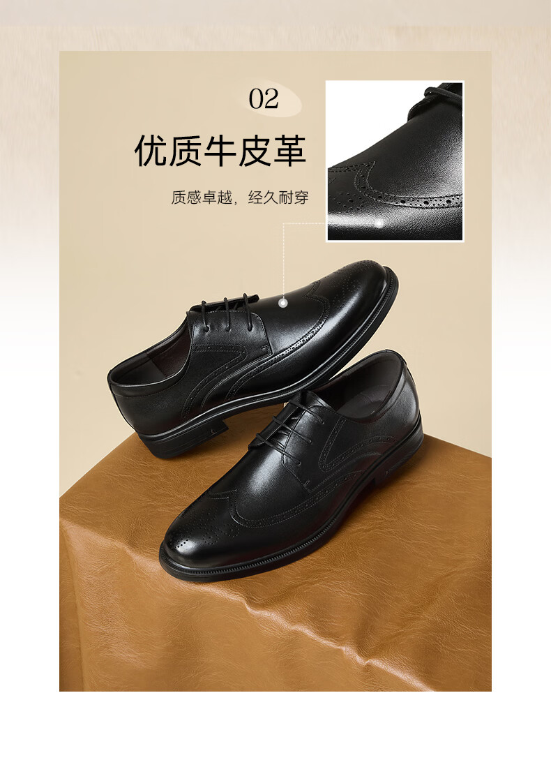 百思图通勤商务皮鞋舒适牛皮男士正装鞋婚鞋25002AM5经典款绒里42