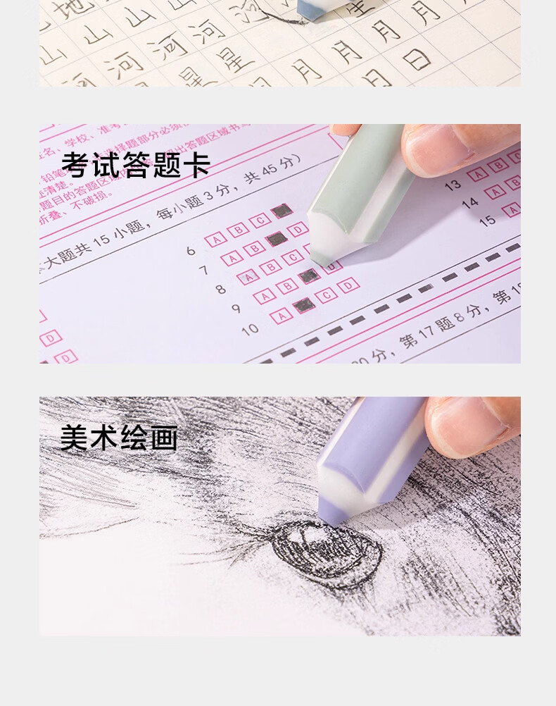 得力(deli)12块2B橡皮擦自动铅笔 白色易擦少屑开学文具学生中考高考开学考试文具美术绘图橡皮