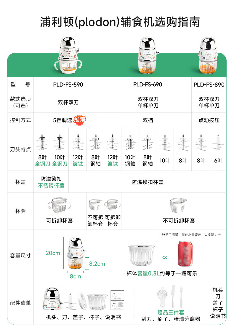 浦利顿(PLODON)辅食料理机婴儿打泥机宝宝多功能小型料理机 辅食316不锈钢搅拌机
