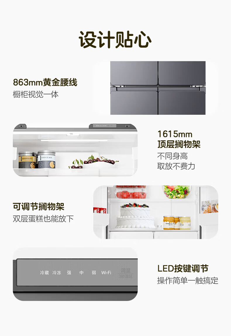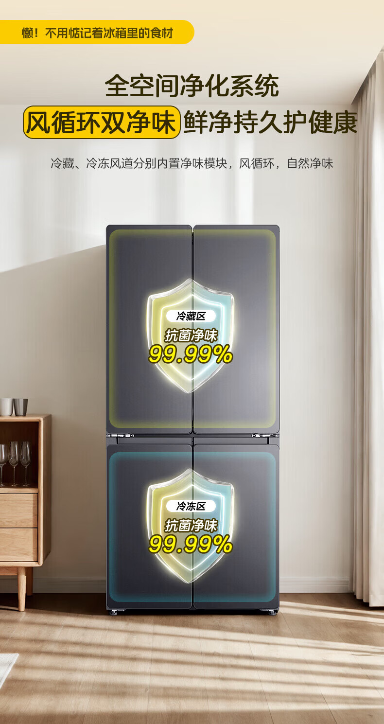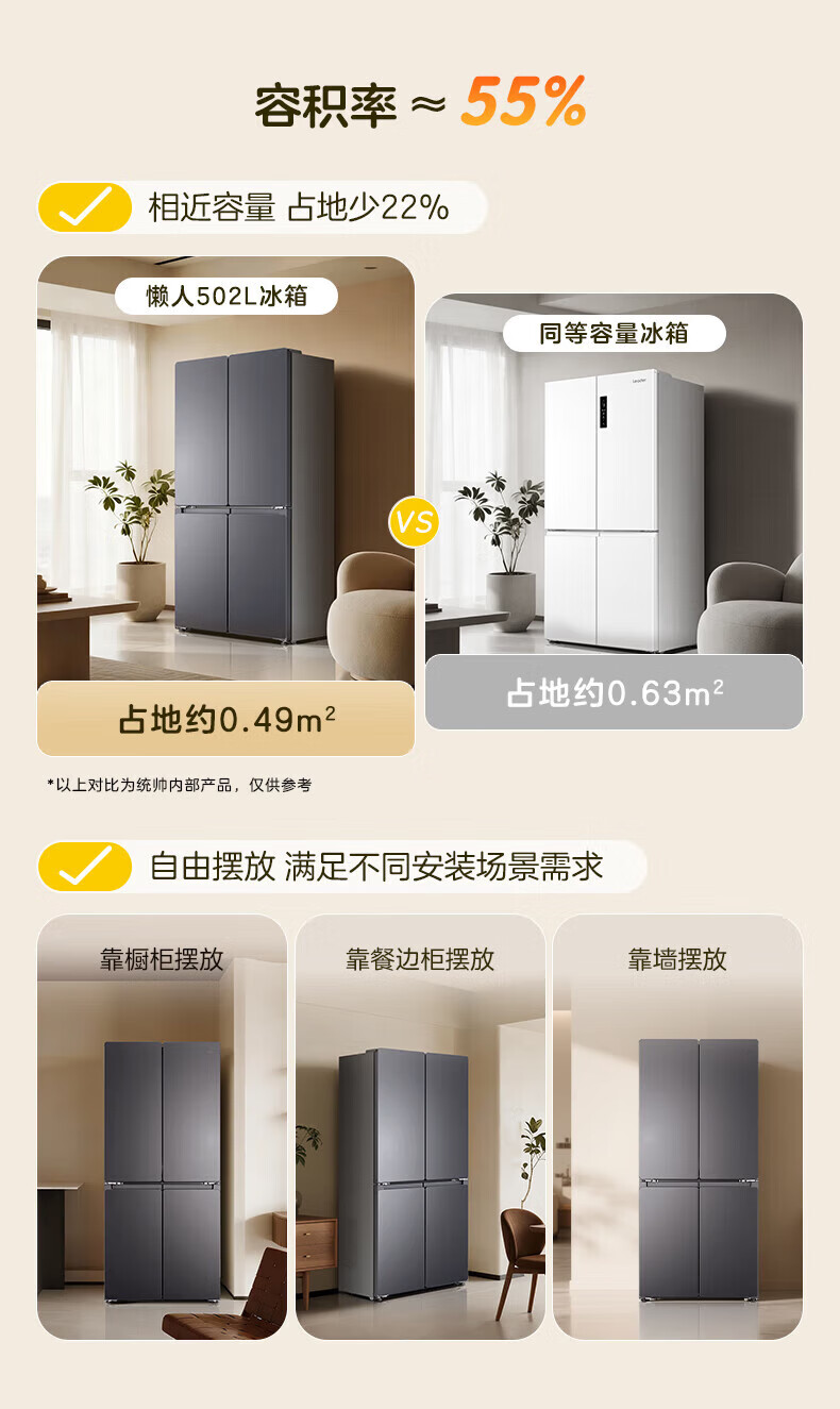 Leader冰箱出品统帅502升四开门十字对开门懒人系列510超薄全域双净化家用风冷无霜大容量电冰箱以旧换新 594mm薄机身+全域自然净+三档变温