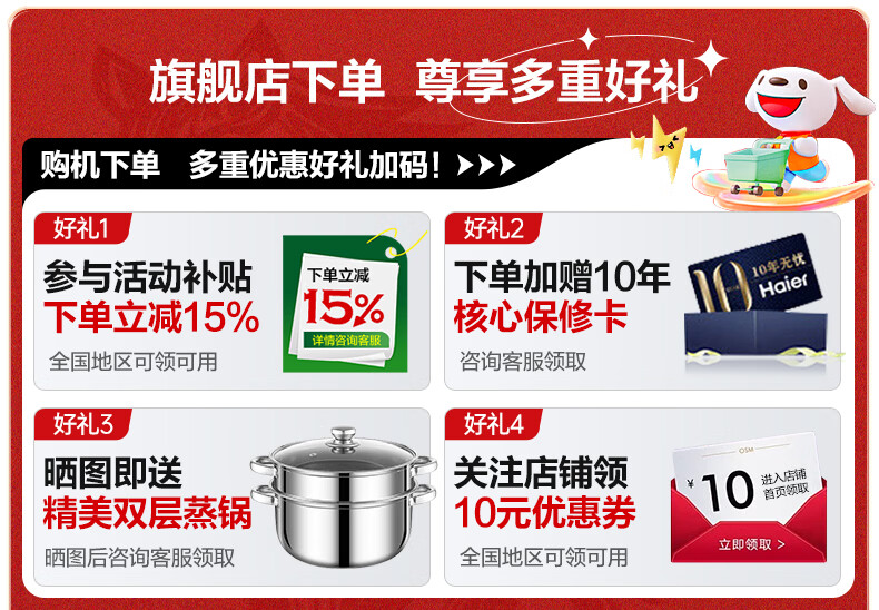 海尔(Haier)烘干机全自动滚筒GA100-58A1家用超薄平嵌热泵式干衣免水空气洗 10公斤 宽:595,深:558,高:850
