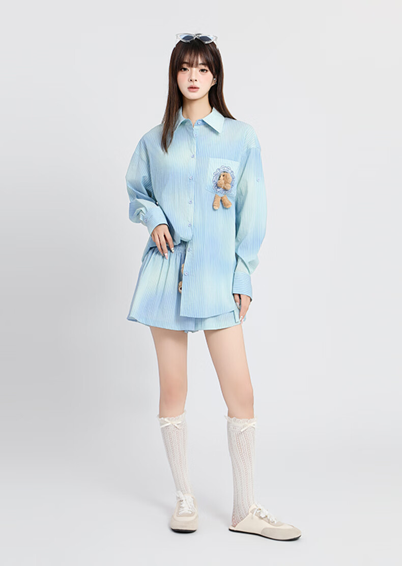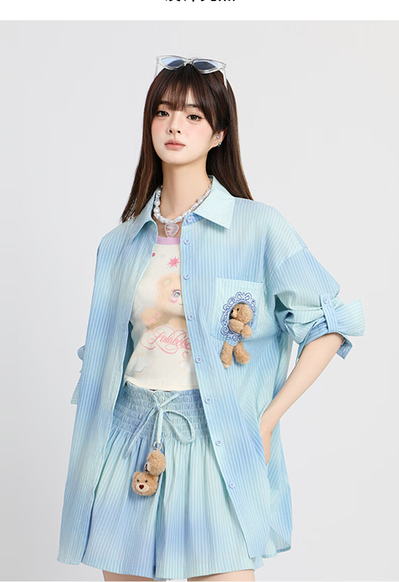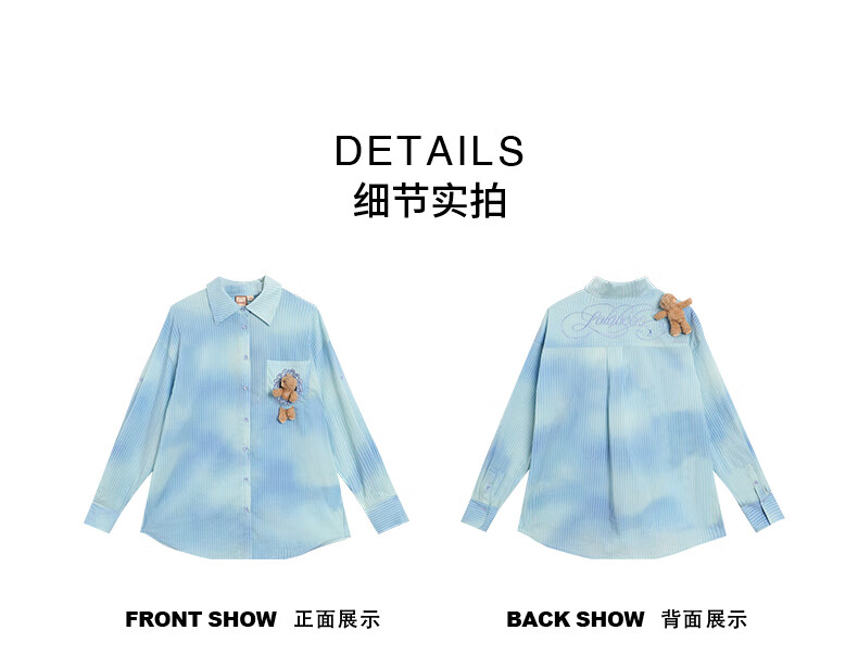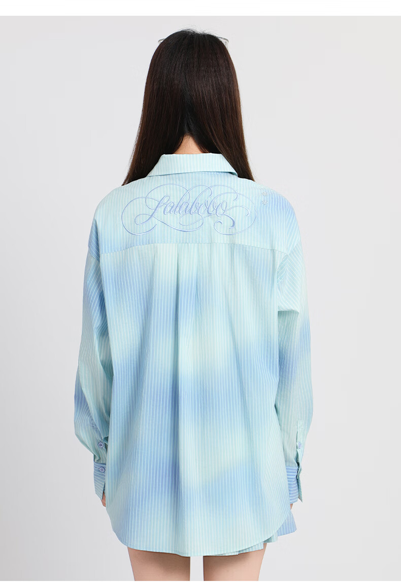 拉拉波波【张泽禹同款】LALABOBO衬衫25年夏新款原创清新渐变印花长袖上衣 蓝色 S