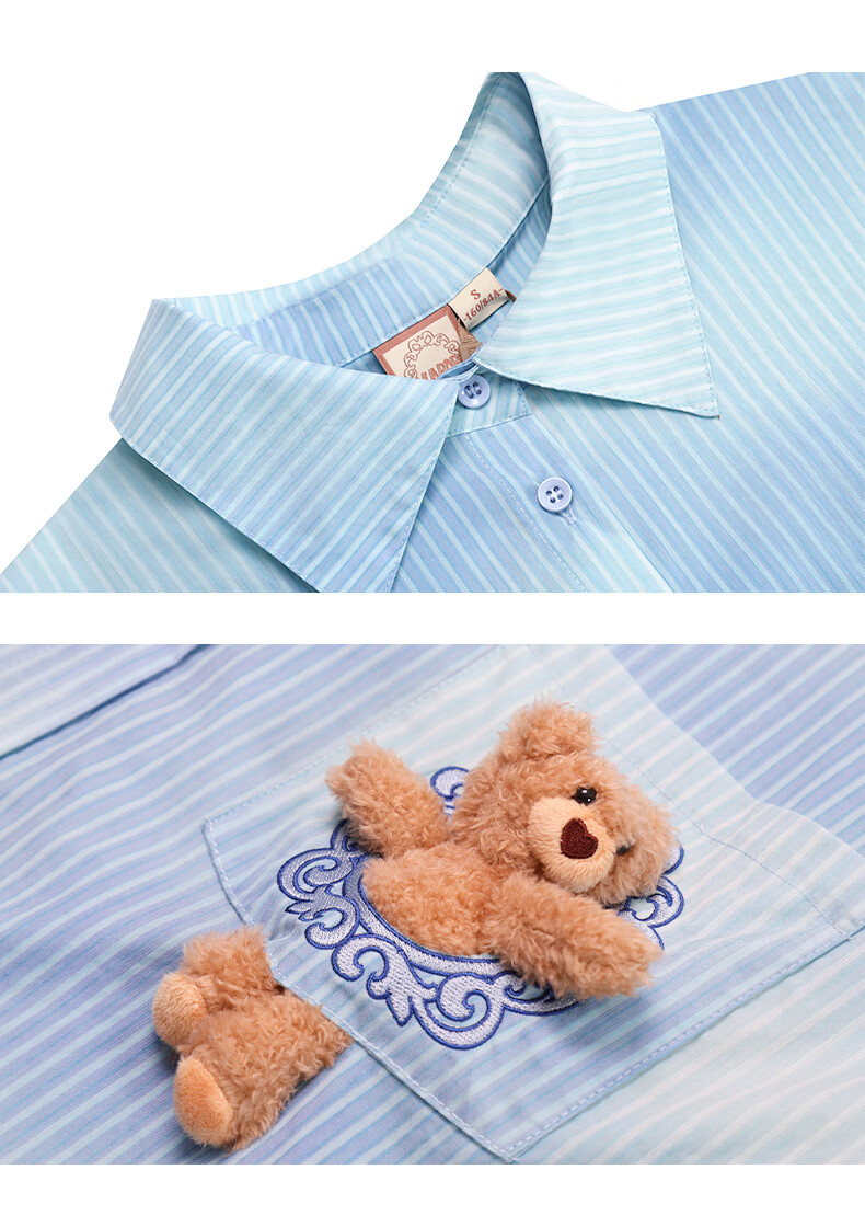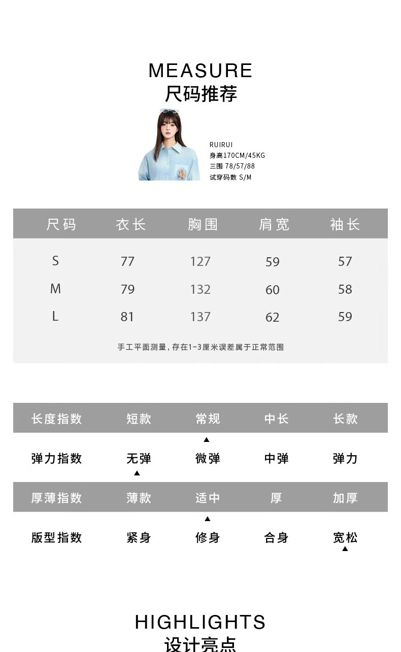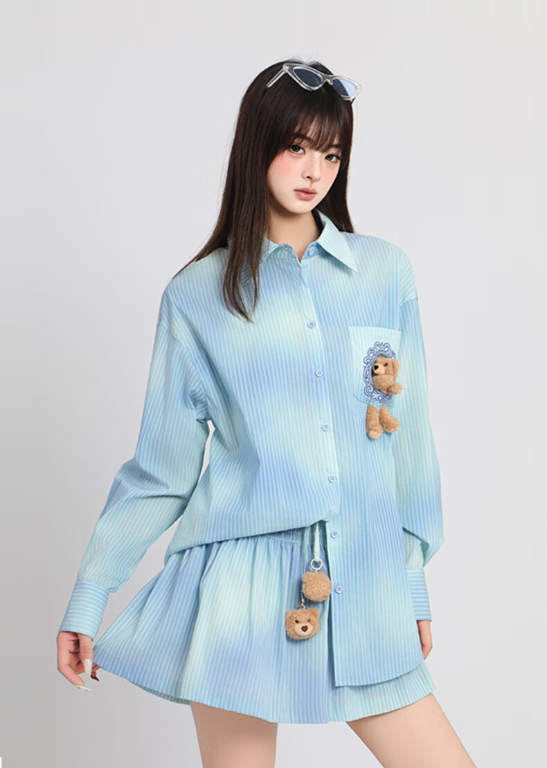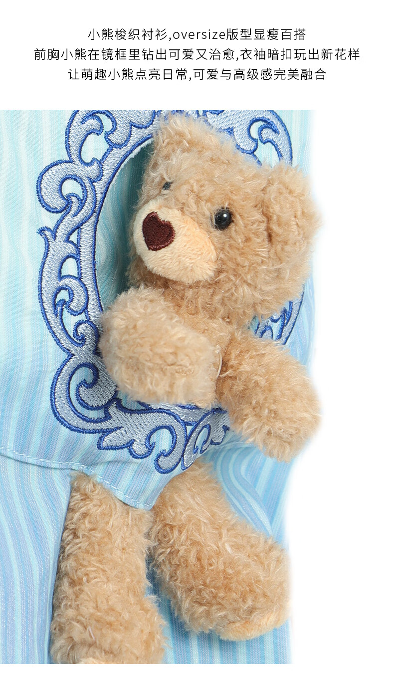 拉拉波波【张泽禹同款】LALABOBO衬衫25年夏新款原创清新渐变印花长袖上衣 蓝色 S