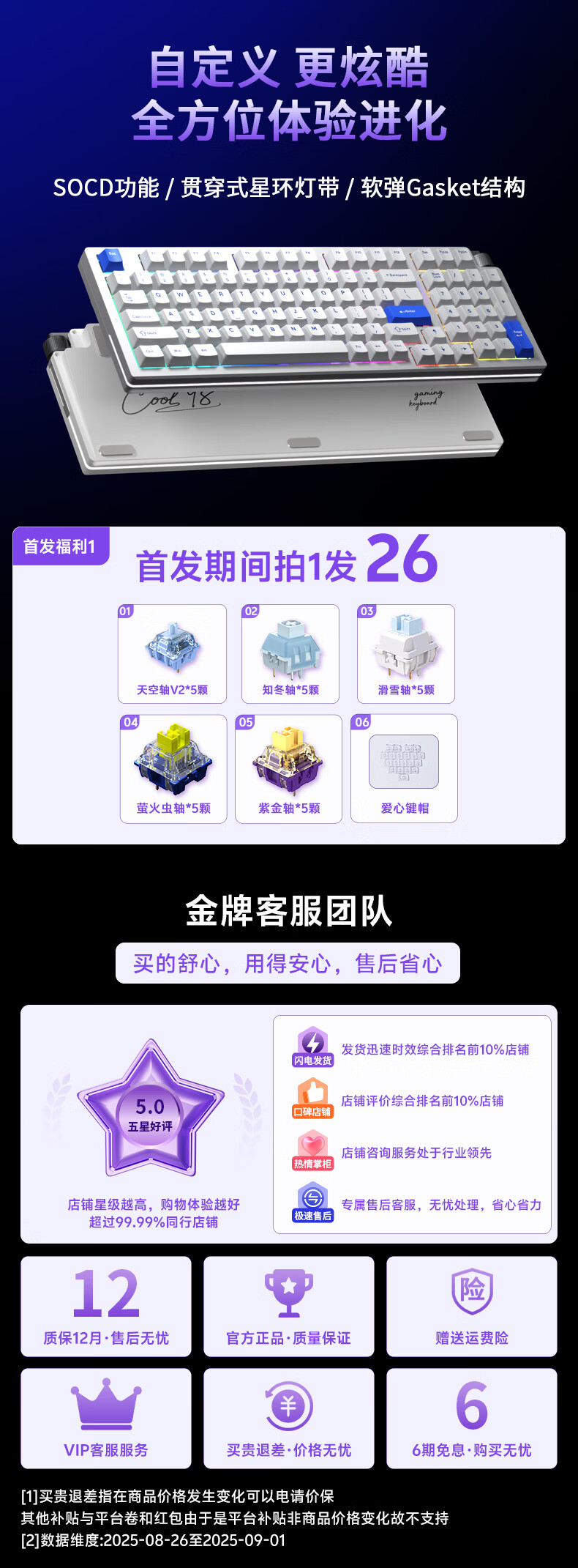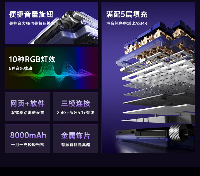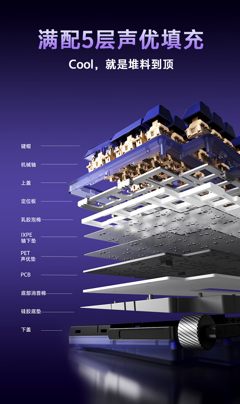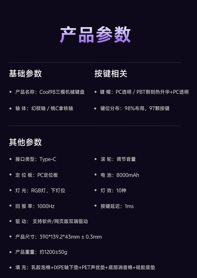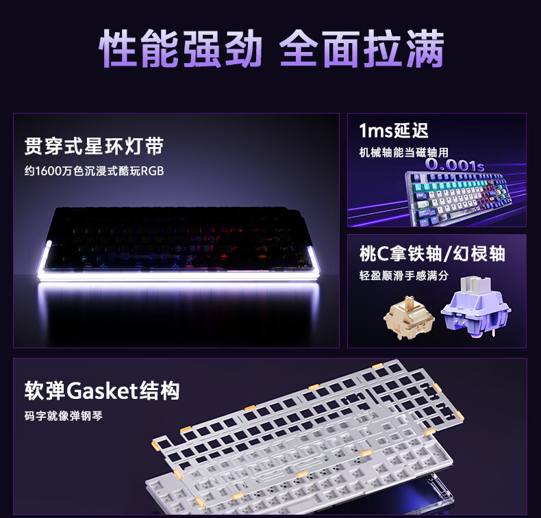 达尔优Cool98 电竞游戏机械键盘客制化三模无线星环灯带透明键盘三角洲无畏契约FPS网页双驱动全键热插拔 动力紫(桃C拿铁轴)