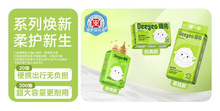 德佑悬挂式洗脸巾一次性绵柔洁面巾加大加厚家庭装大容量擦脸巾卸妆巾 【王牌爆款】200抽*3包
