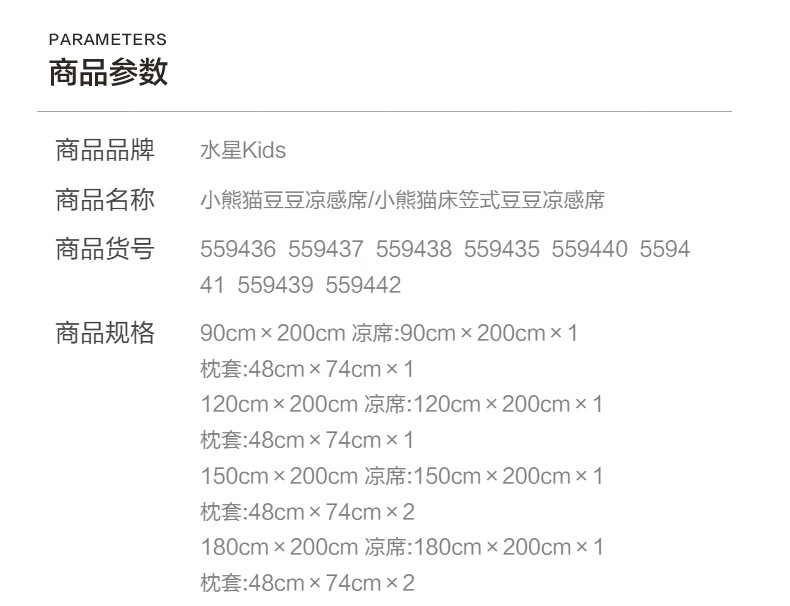 水星家纺小熊猫豆豆凉感席/小熊猫床笠式豆豆凉感席 小熊猫豆豆凉感席 200cm*90cm