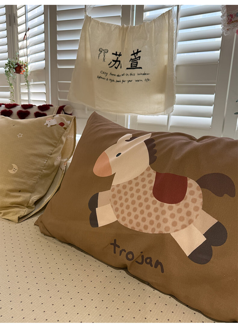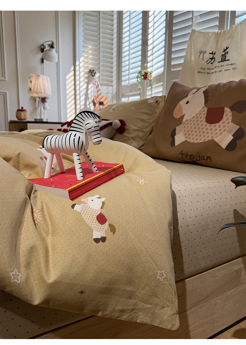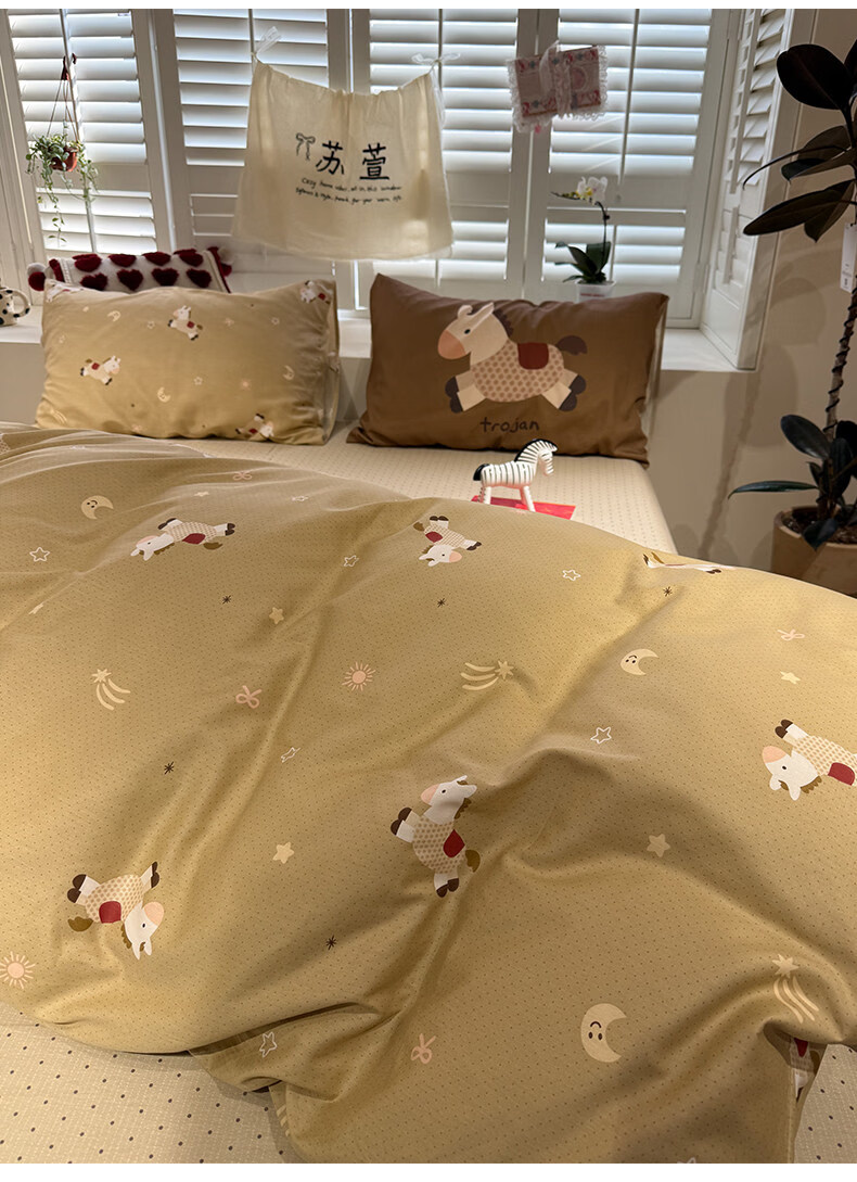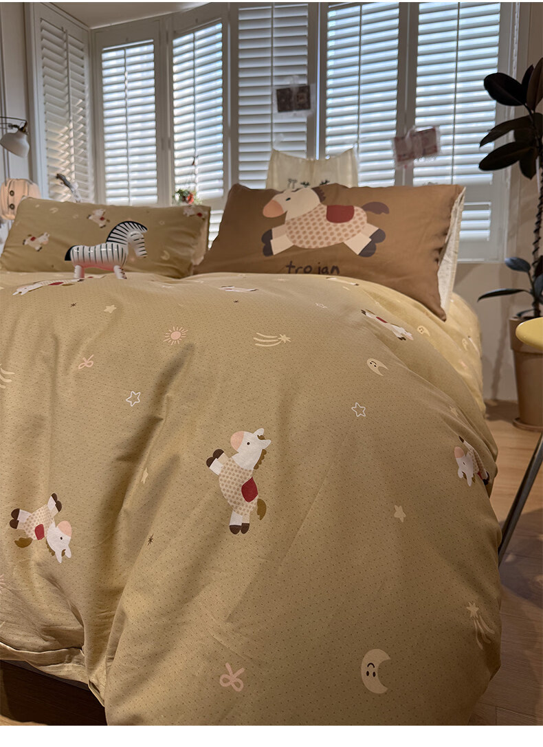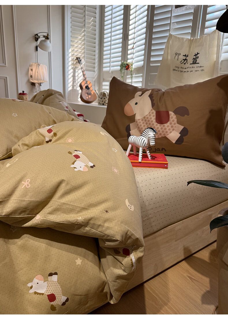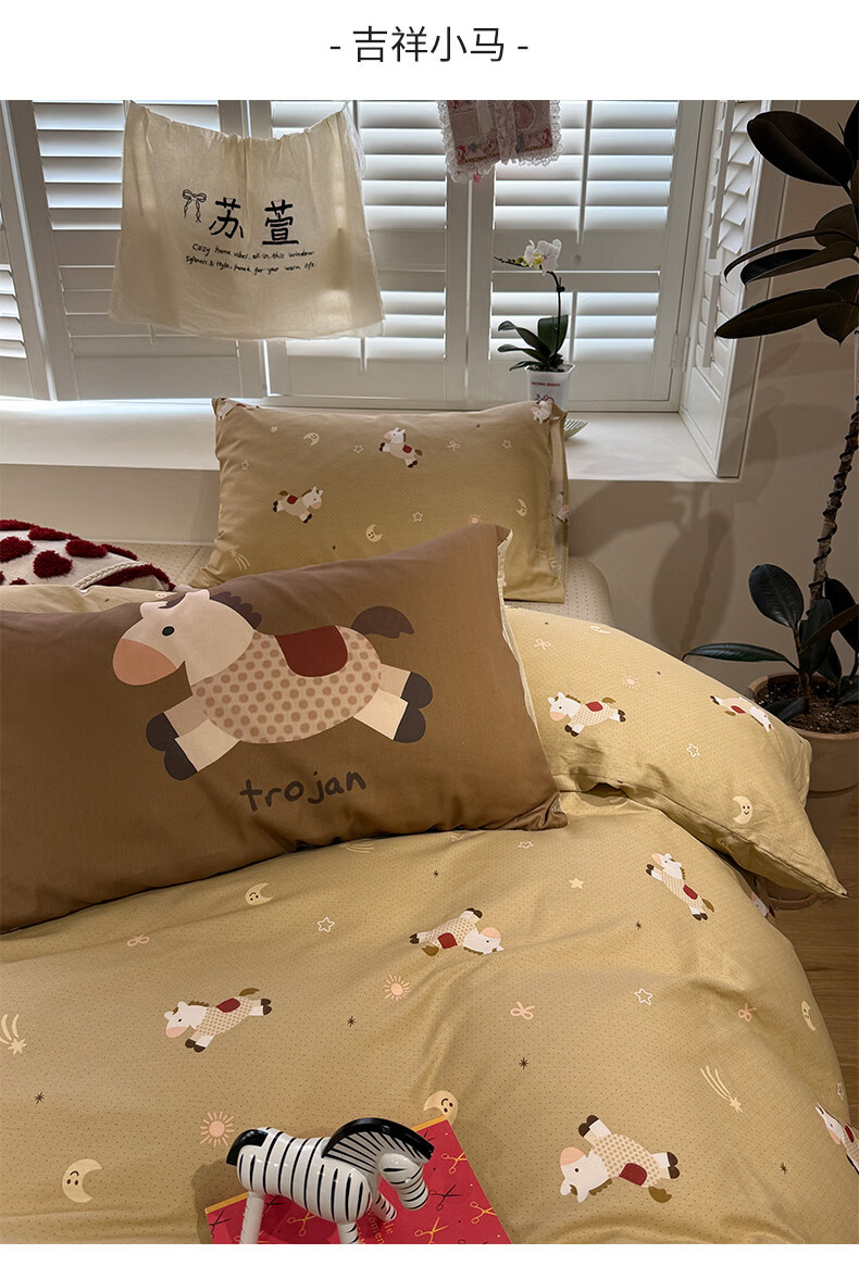 苏萱ins新春贺岁款全棉小马床上四件套纯棉1.5m1.8米被套床单三件套品 吉祥小马 1.8m 床单款 四件套-被套200x230cm