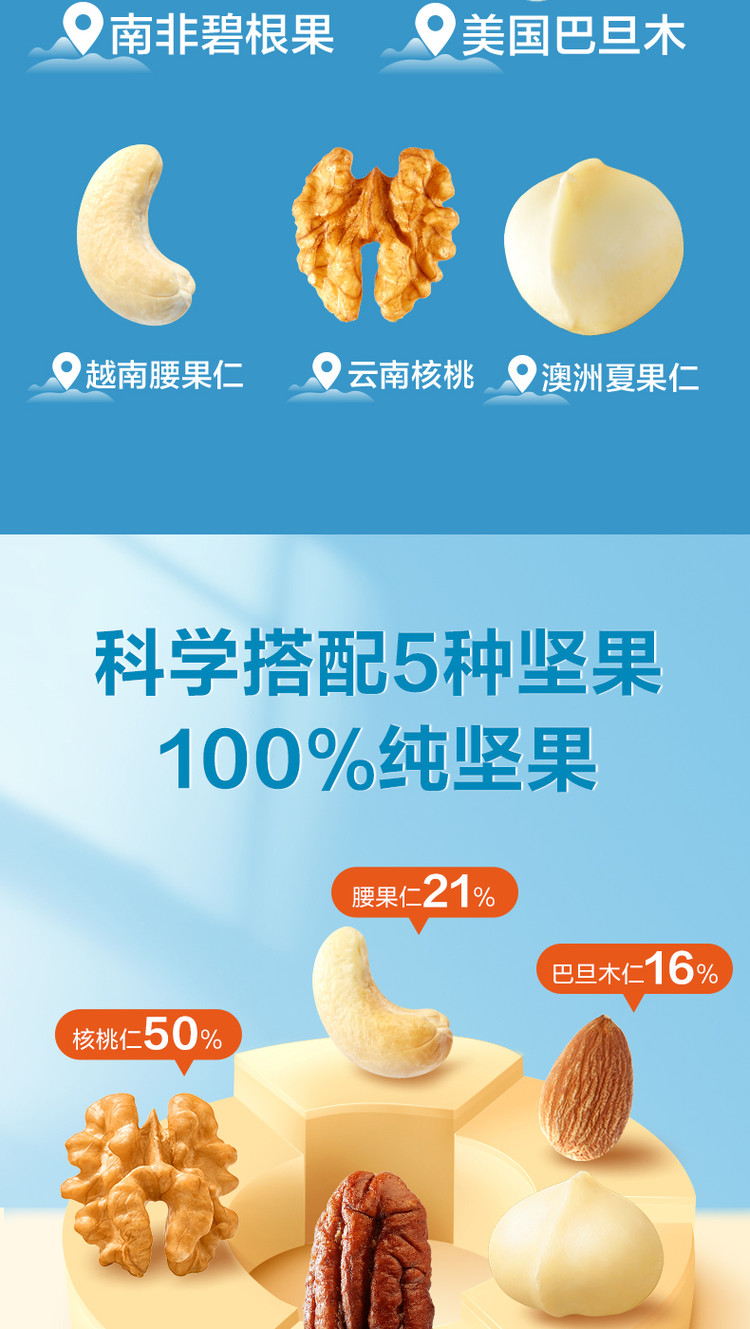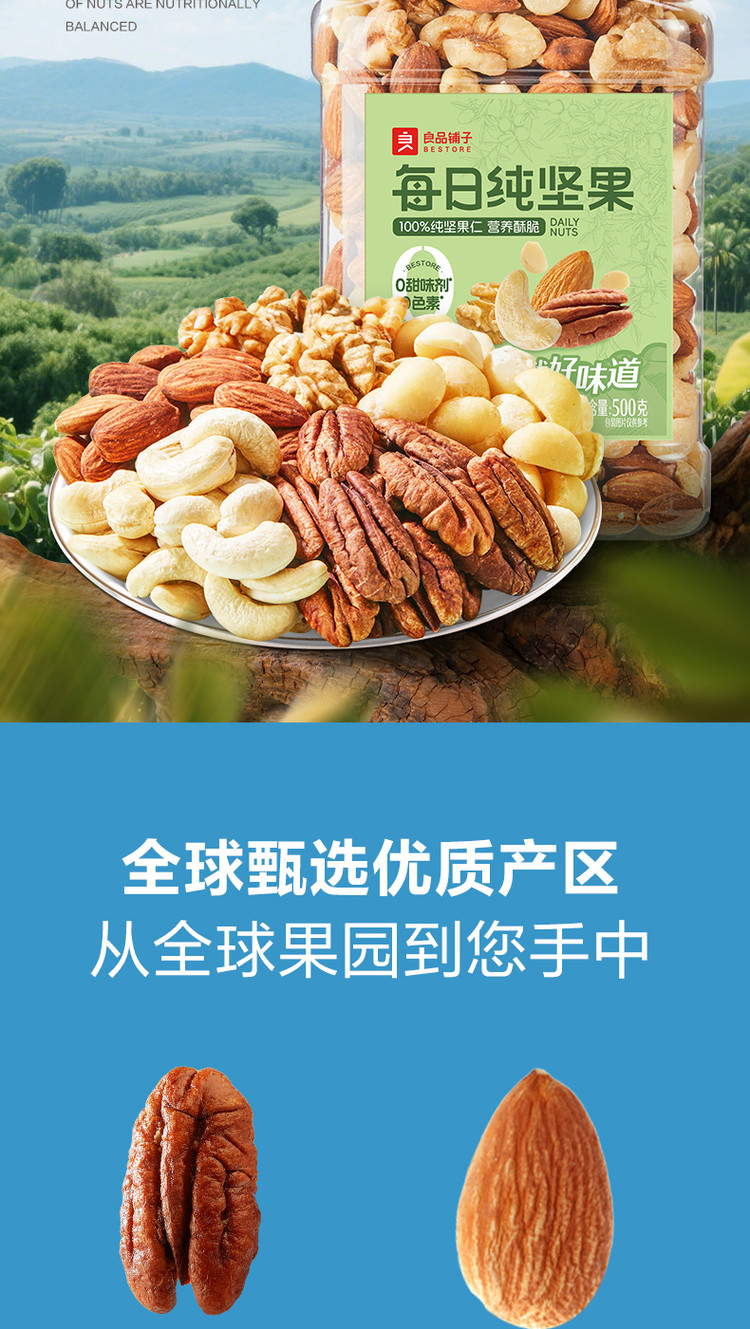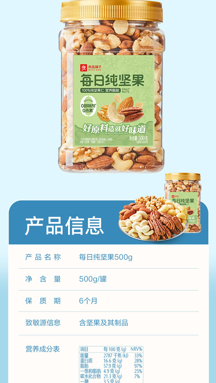 良品铺子 【5种纯坚果】每日坚果混合果仁500g纯坚果罐装健康孕妇休闲零食