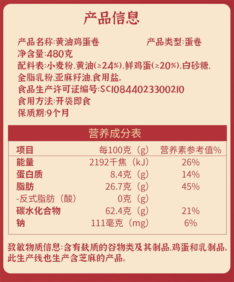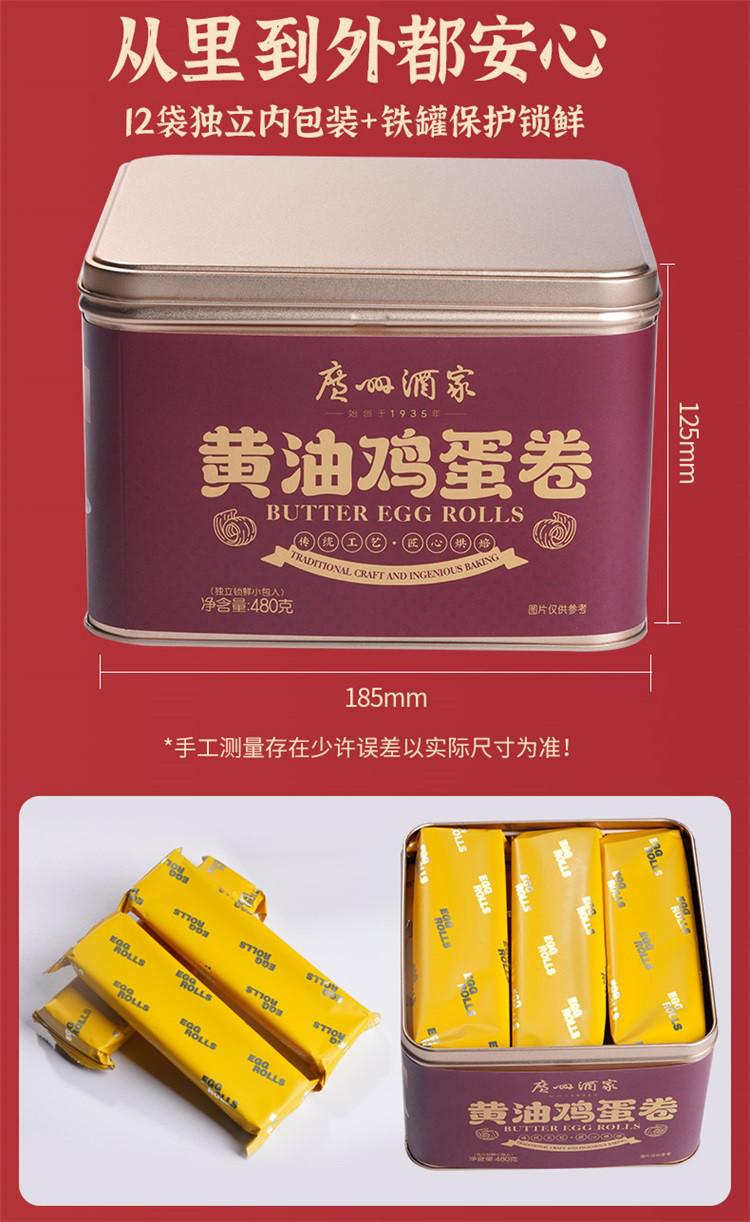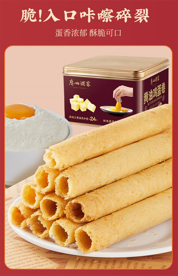 广州酒家 黄油鸡蛋卷礼盒儿童零食饼干糕点伴手礼卷心酥生日礼物