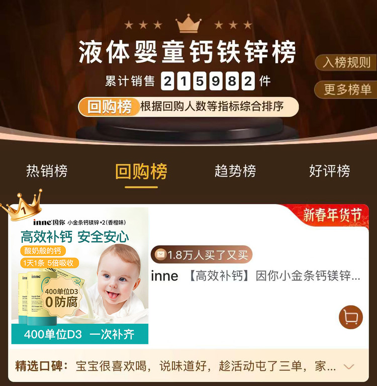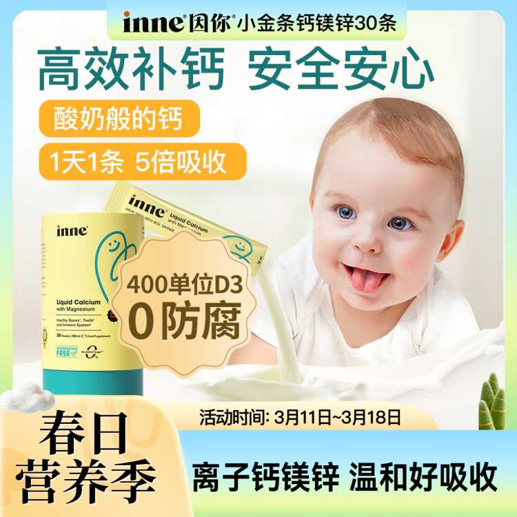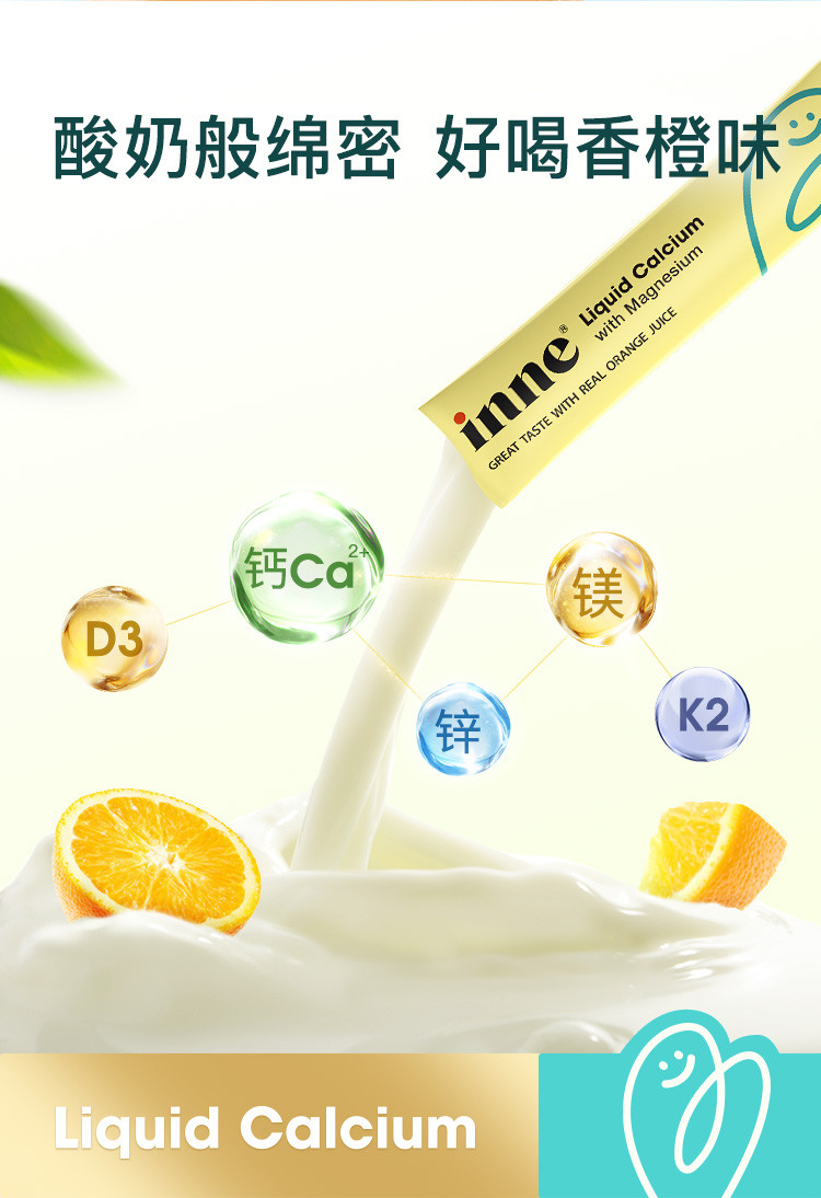 inne 因你小金条钙镁锌儿童液体钙补D3柠檬酸钙效期至26.12月