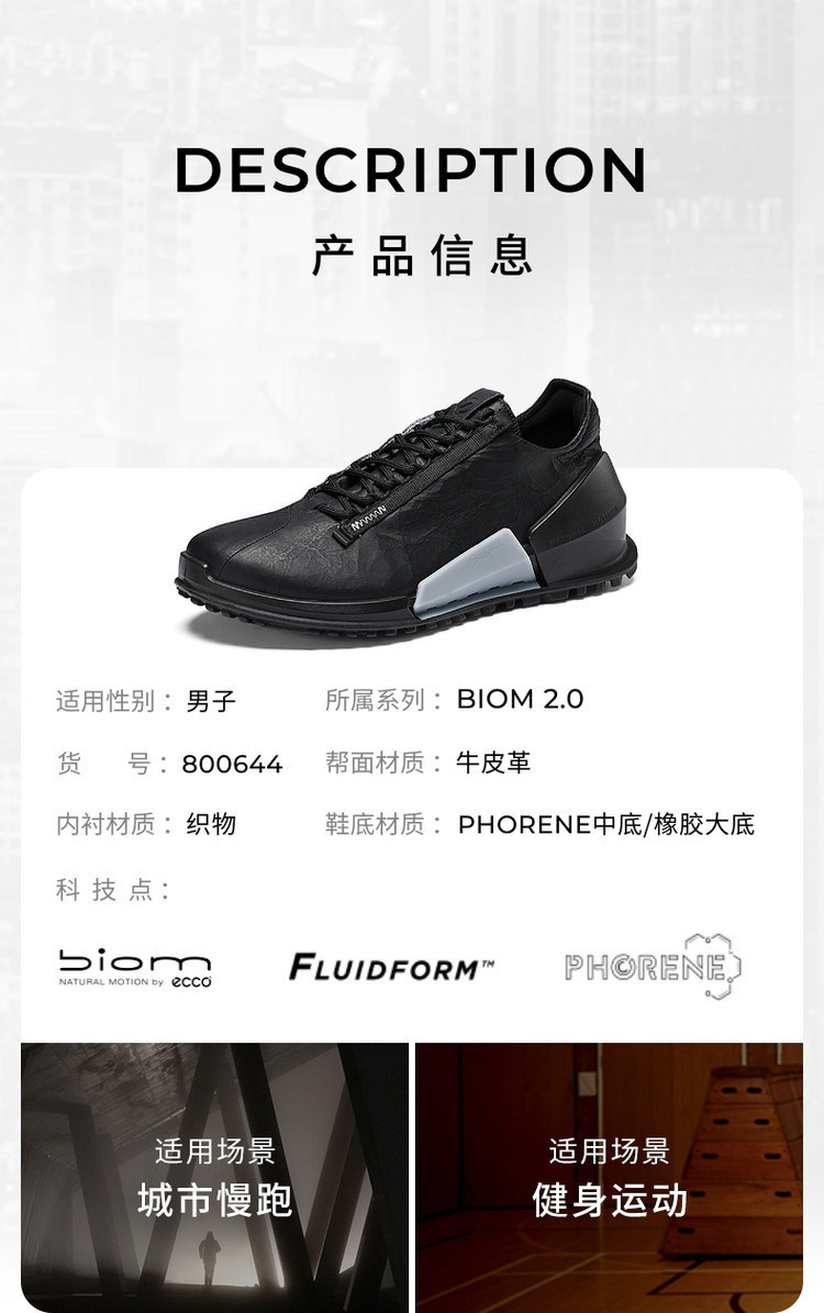 ECCO 黄景瑜同款健步鞋BIOM健步2.0男鞋800644