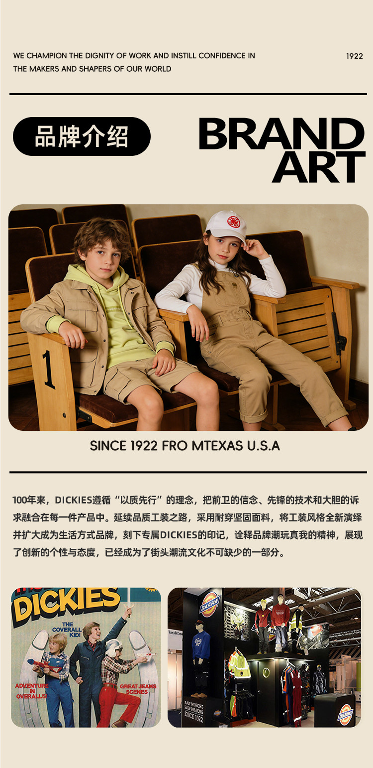 Dickies 童装短袖T恤2026年新款简约百搭基础休闲上衣男女孩舒适衣服